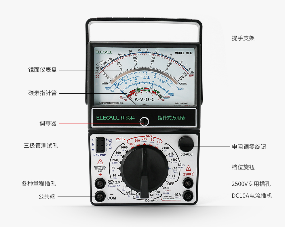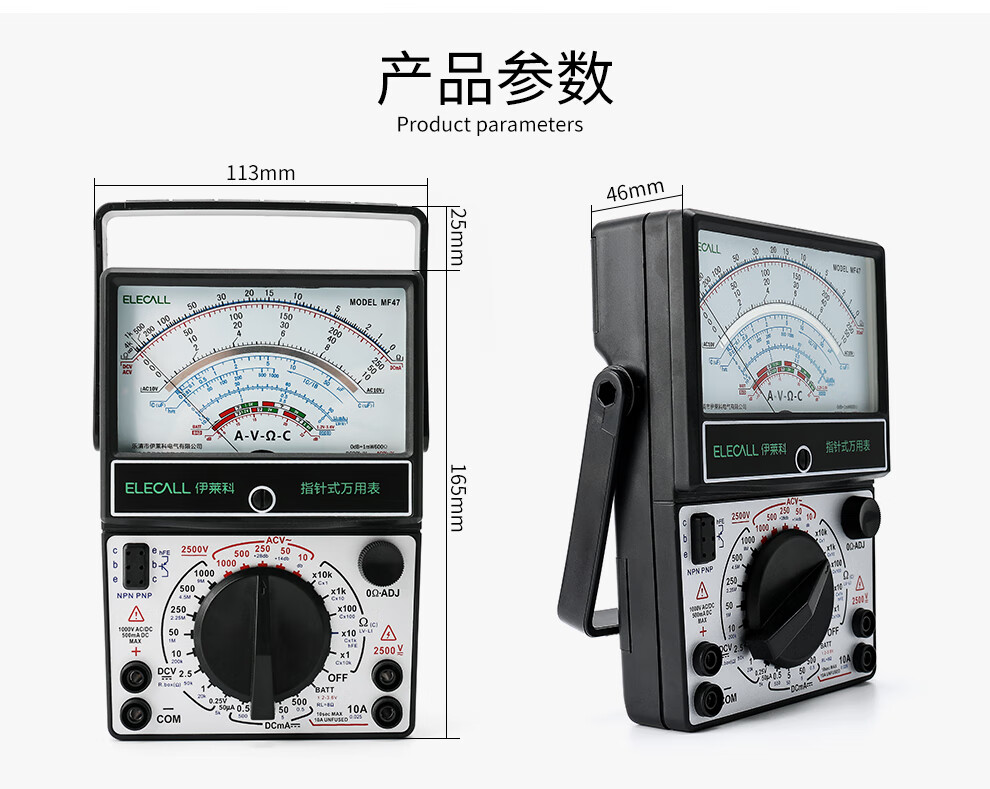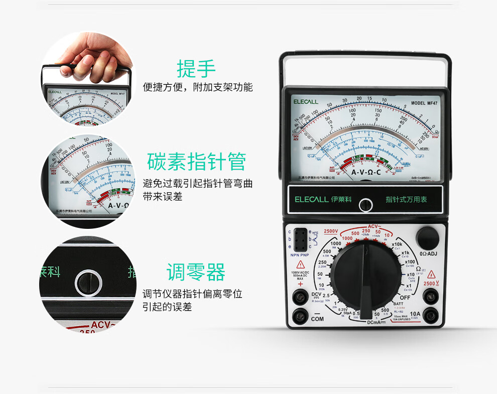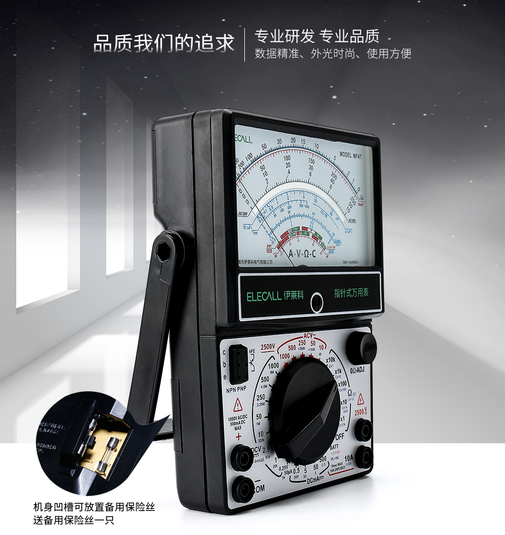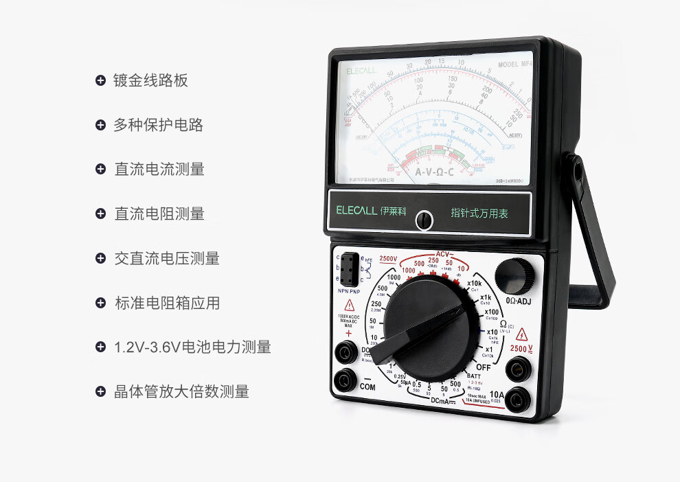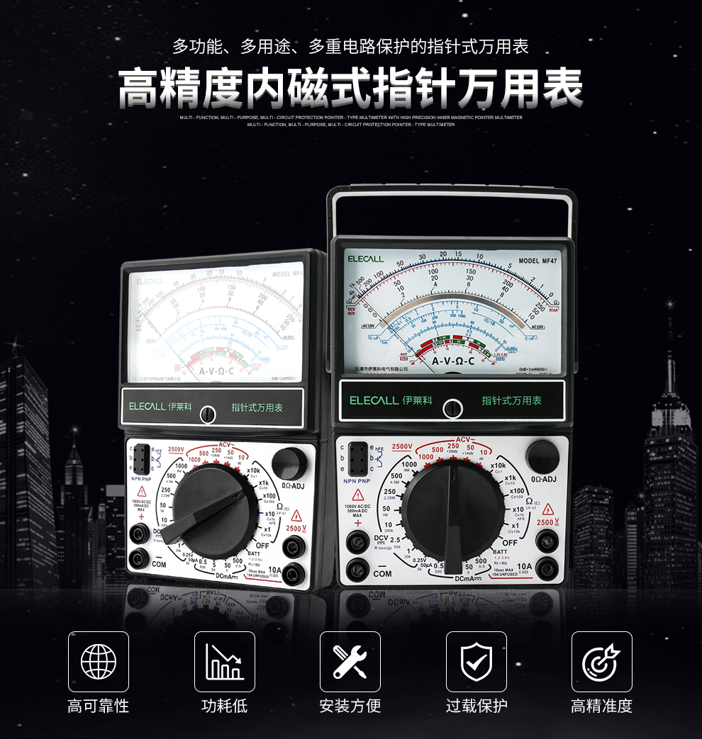ELECALL ELECALL mechanical pointer multimeter MF47 internal magnetic multiple circuit protection mechanical meter multimeter comes standard (with 9V battery + AA battery + fuse)