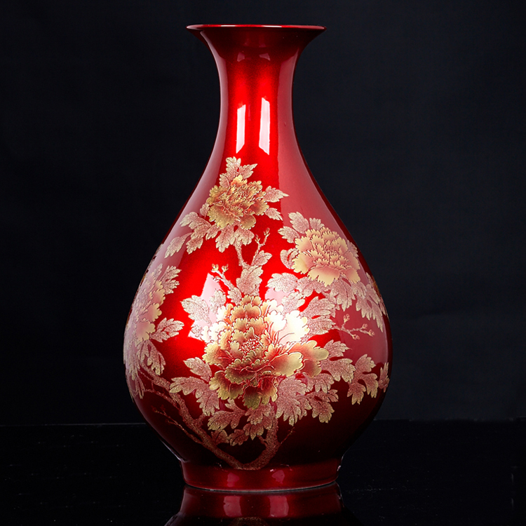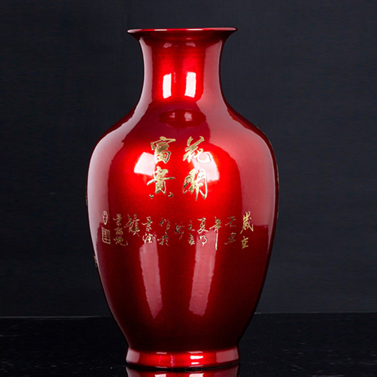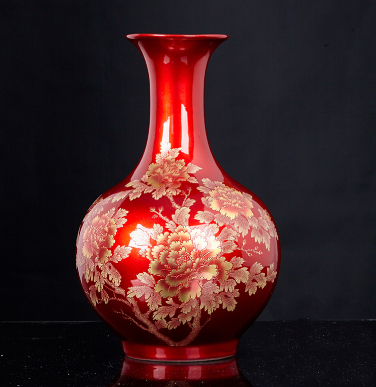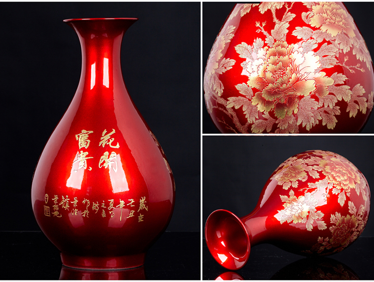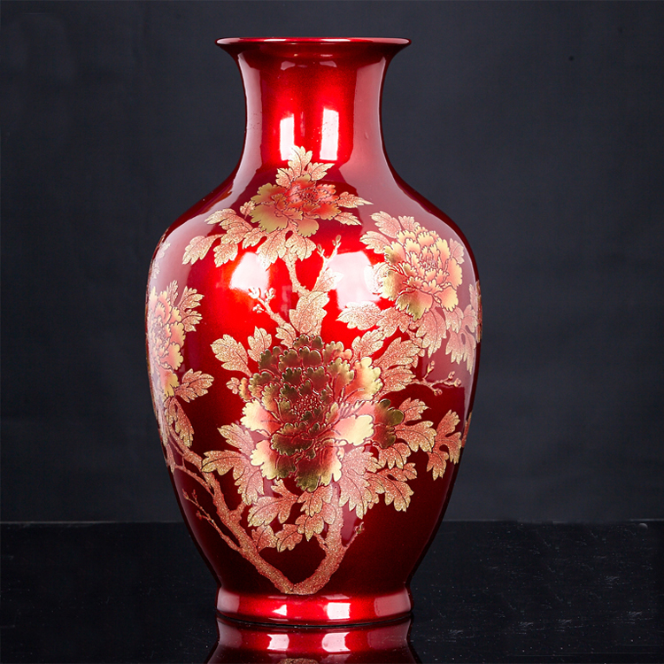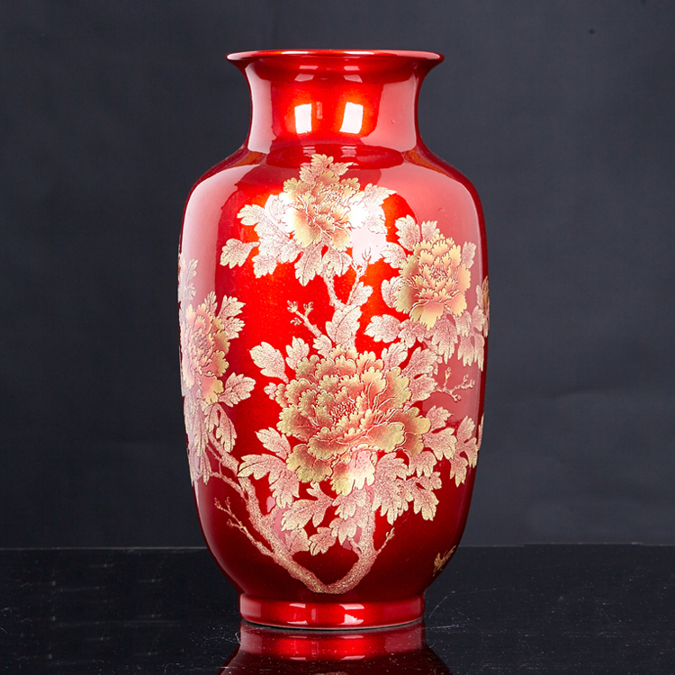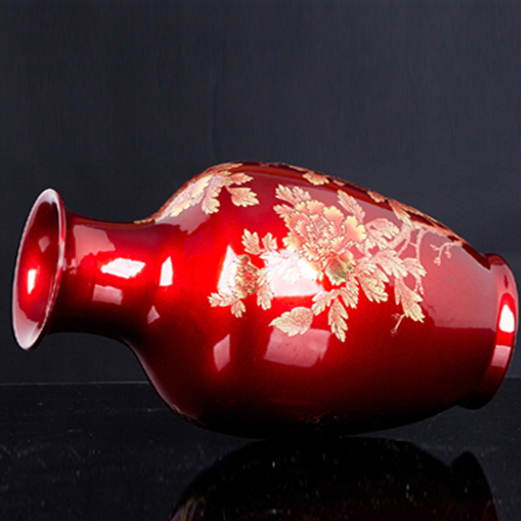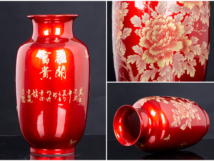 Porcelain Sheng Jingdezhen Ceramics Chinese Red Crystal Glaze Flower Blooming Rich Peony Vase Modern Home Decor Home Crafts Ornaments Appreciation Vase with Base