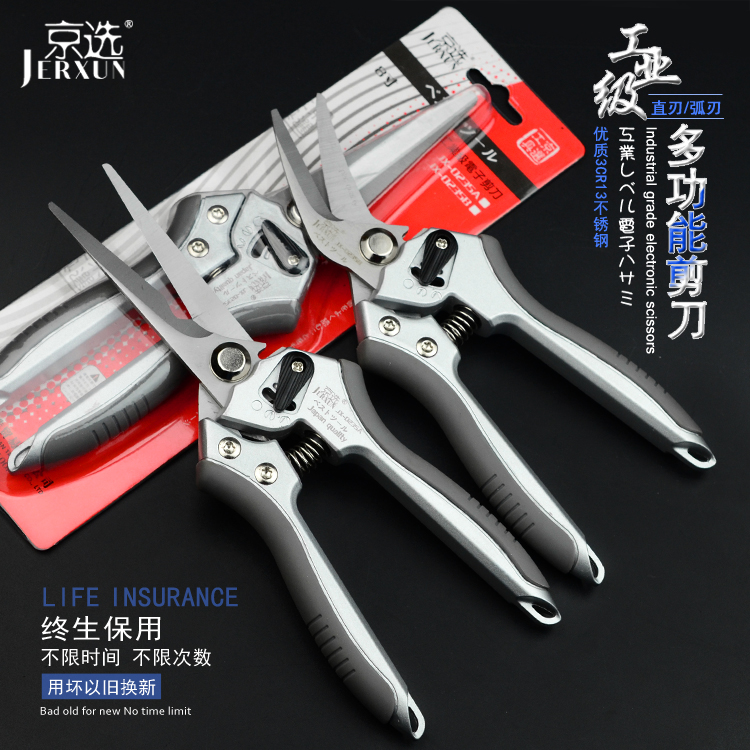 JERXUN pruning scissors, garden shears, gardening thick branch shears, fruit branch shears, greening shears, electrician scissors, stainless steel wire trough scissors, straight blade multi-purpose scissors