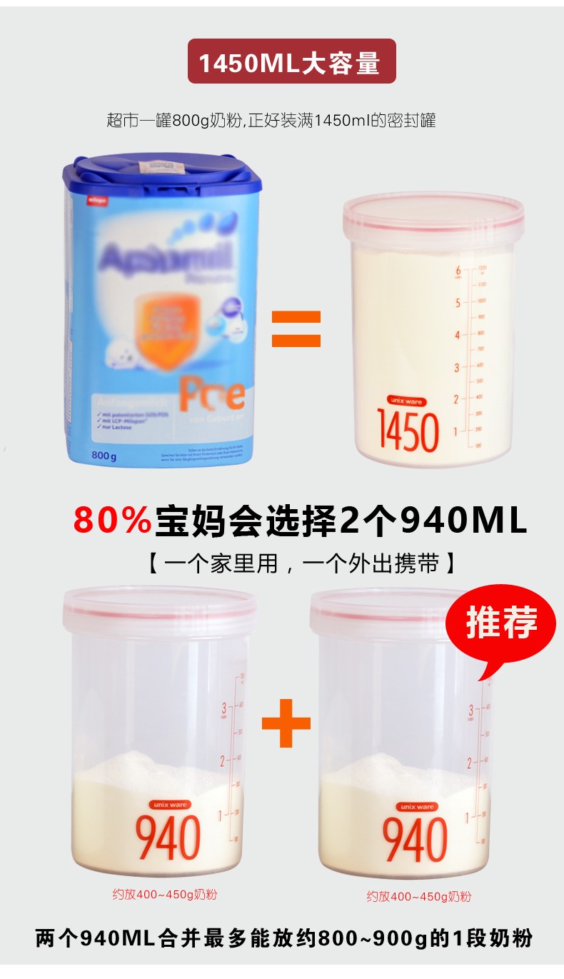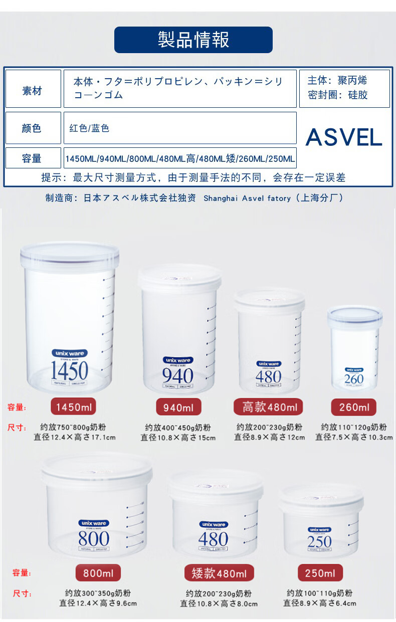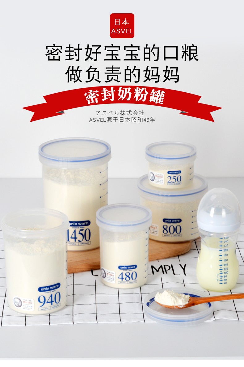 ASVEL household plastic sealed can moisture-proof milk powder can snack food supplement can seasoning can milk powder box portable 800mL (approximately 350g milk powder)