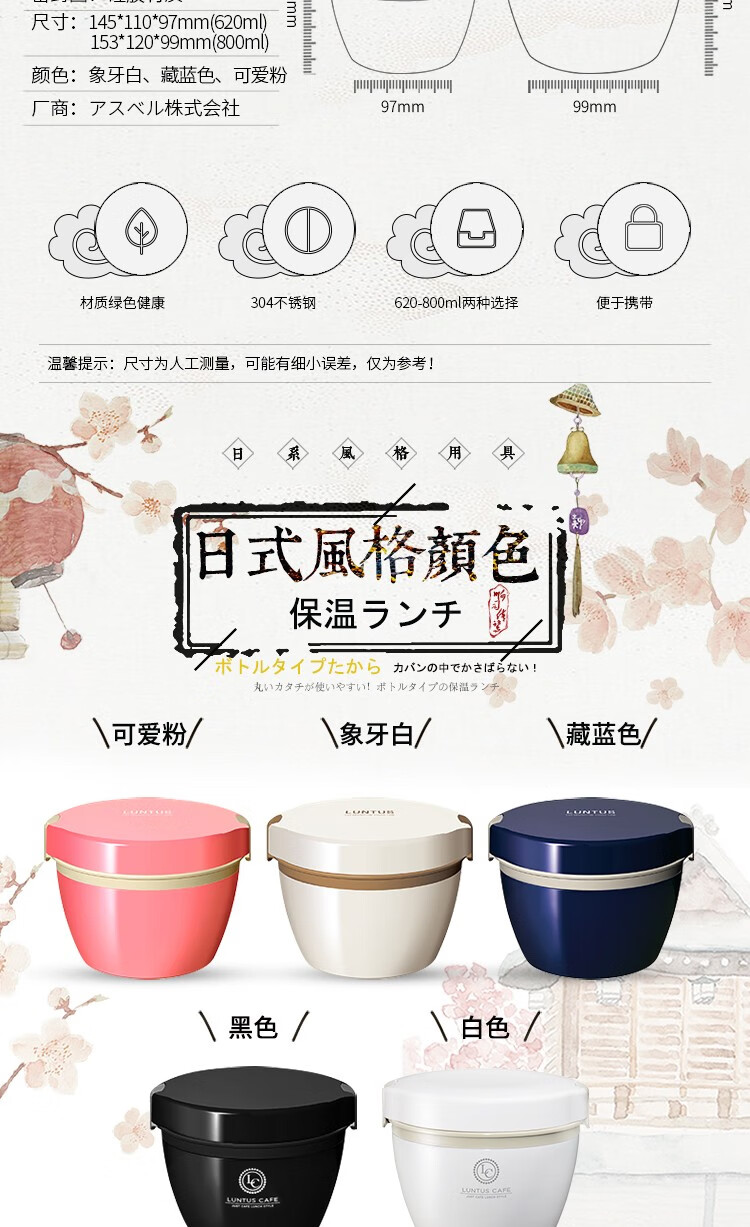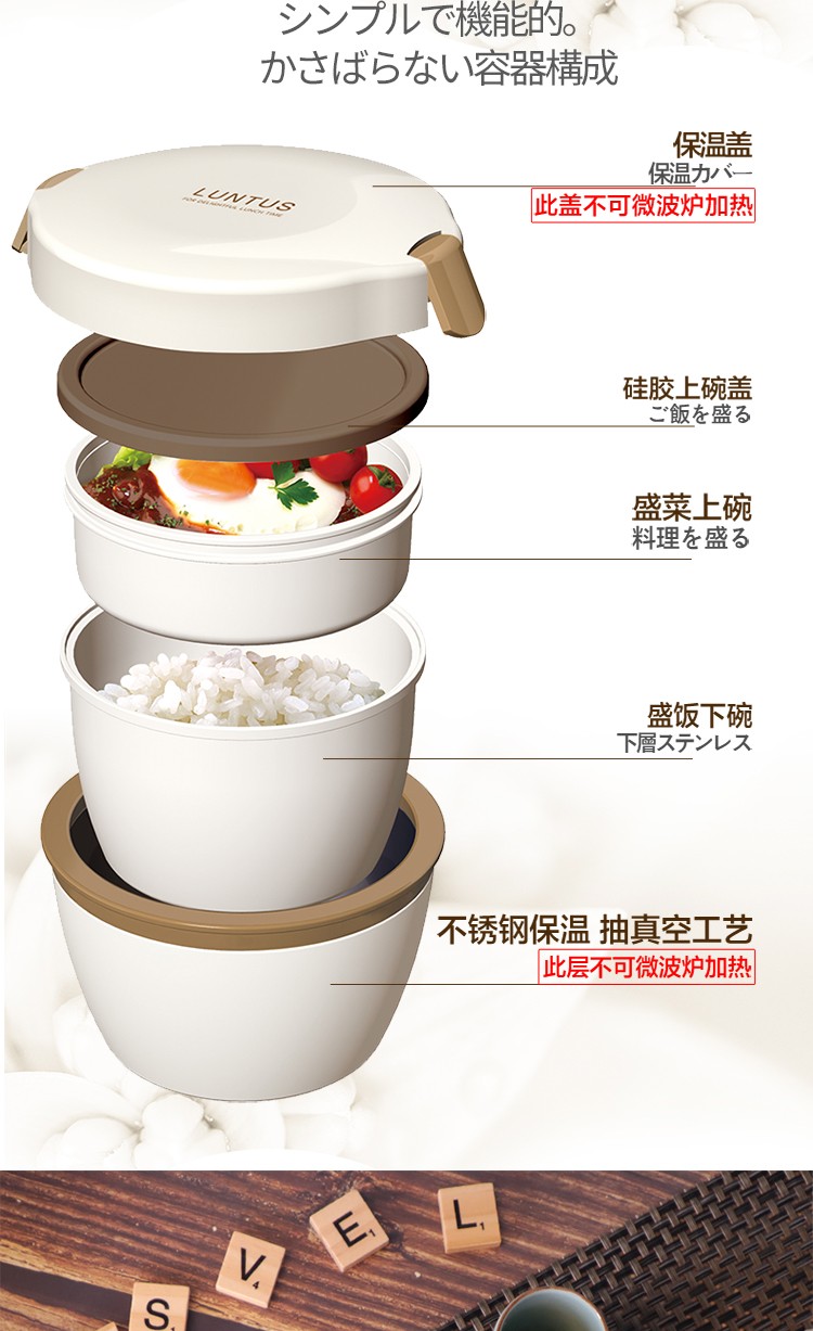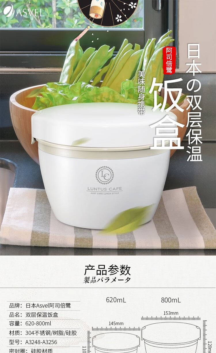 ASVEL stainless steel insulated lunch box 2-layer adult student double-layer insulated bucket microwaveable, pink 620ml 2-layer