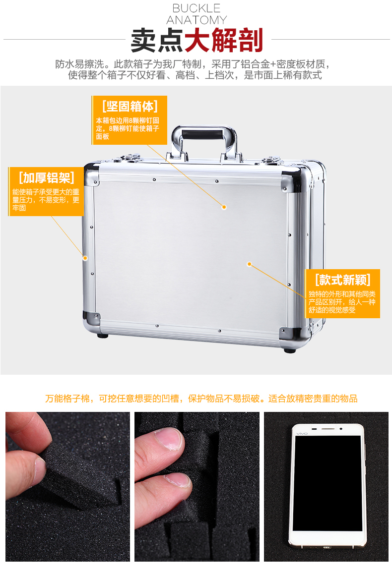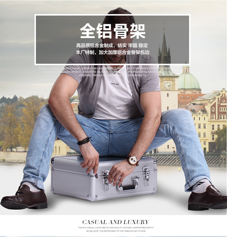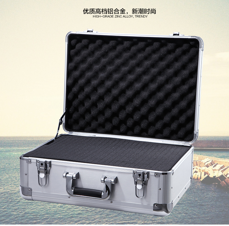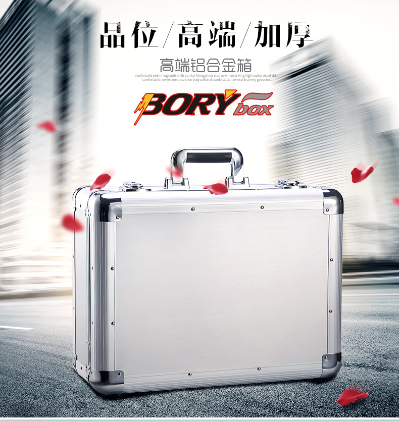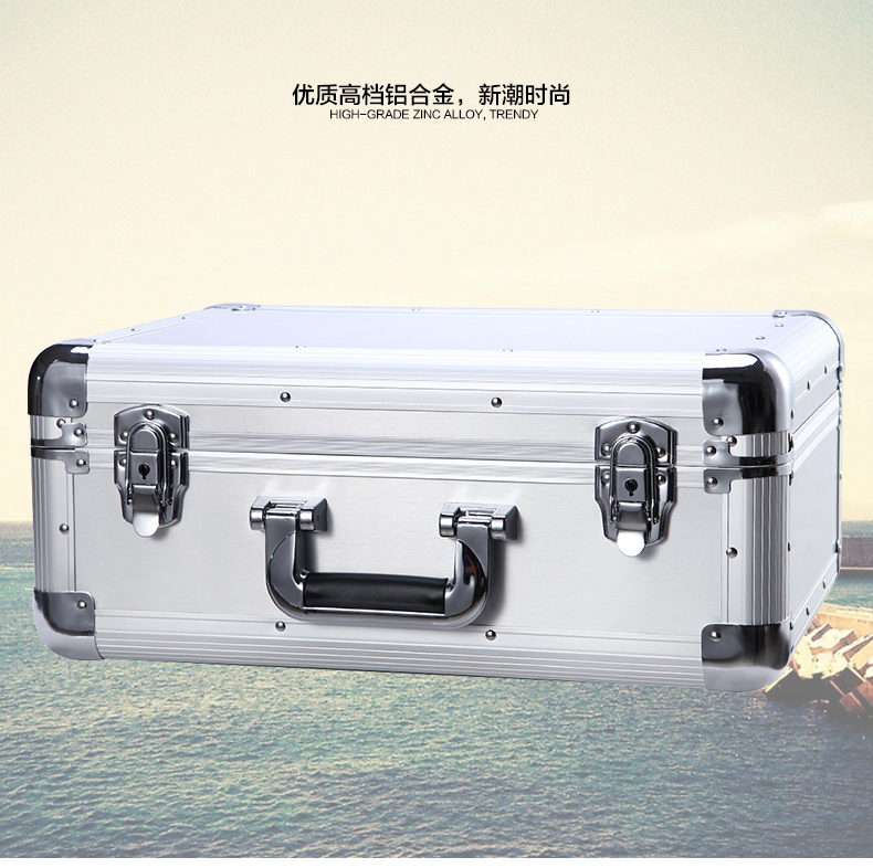BORY lockable aluminum alloy tool box sample storage instrument box portable safe aluminum alloy box all-aluminum surface aluminum box key lock 460*360*190MM
