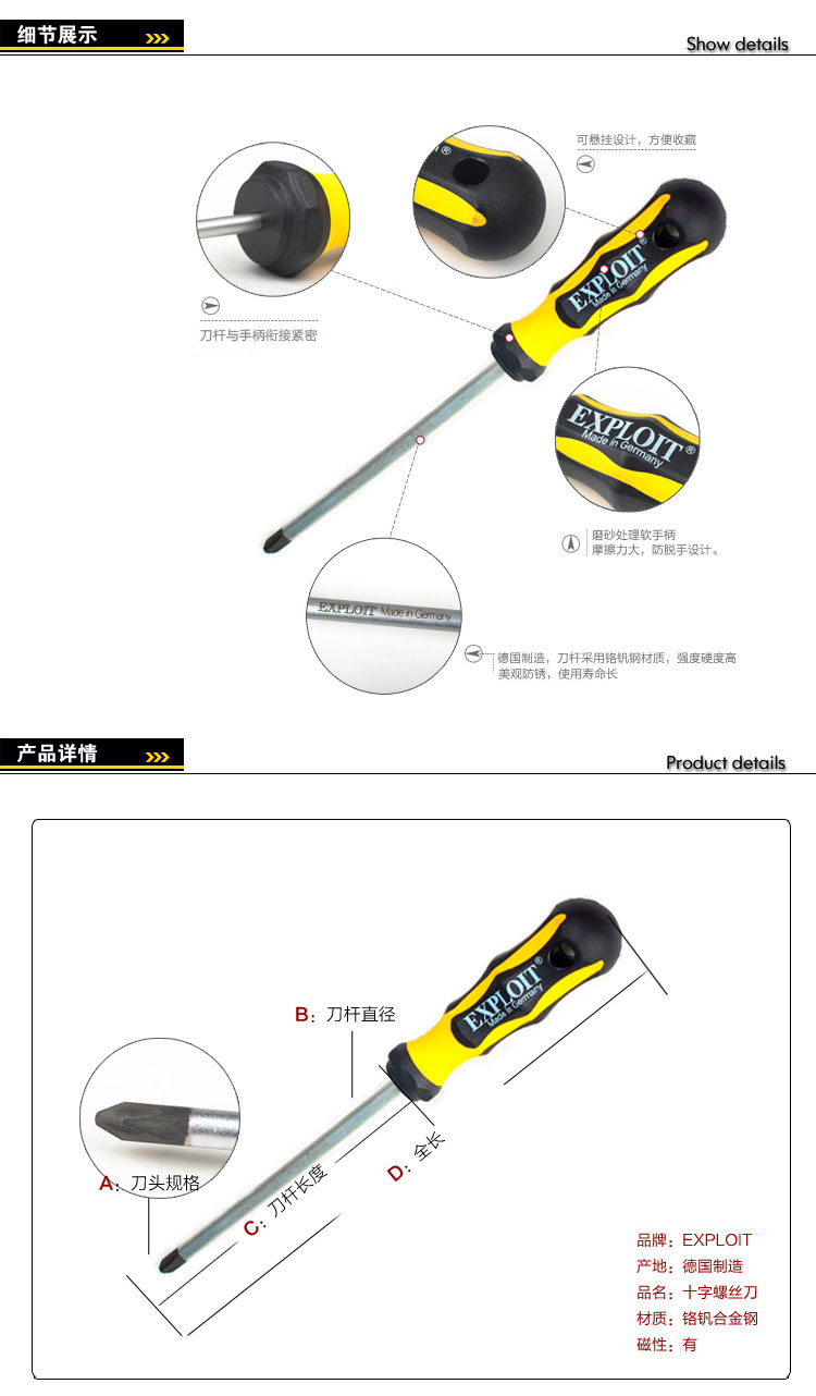 EXPLOIT German Phillips screwdriver PH1X80mm