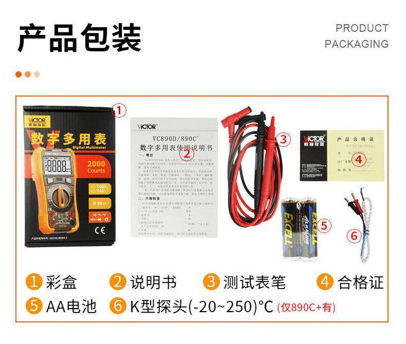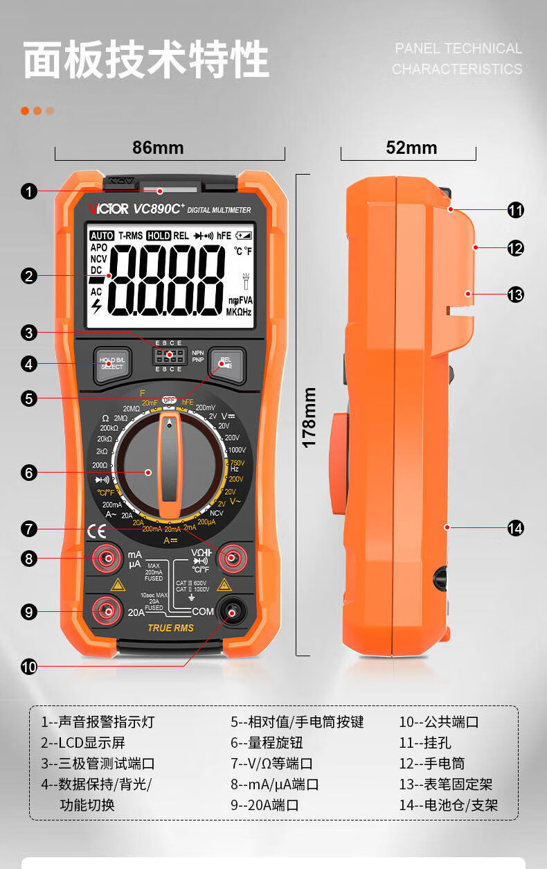 Victory Instrument (VICTOR) VC890C+D multimeter digital high-precision fully automatic smart multimeter repair electrician multi-purpose VC890C+ standard configuration + instrument package