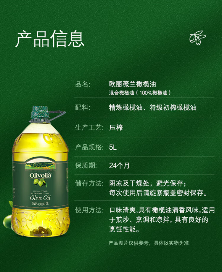 Olivoila Fidelity Olive Oil Edible Oil Olive Oil Pressed Pure Olive Oil 5L