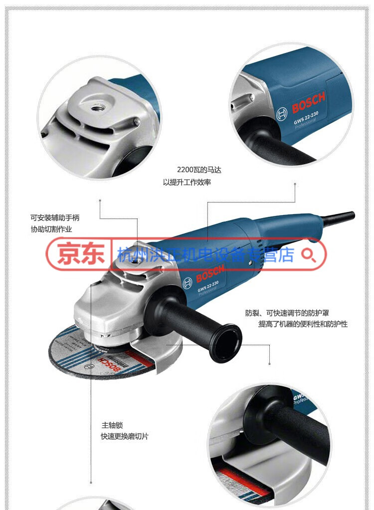 Bosch (BOSCH) angle grinder GWS2200-180/230H angle grinder high power 2100W cutting machine polishing machine GWS2200-180H