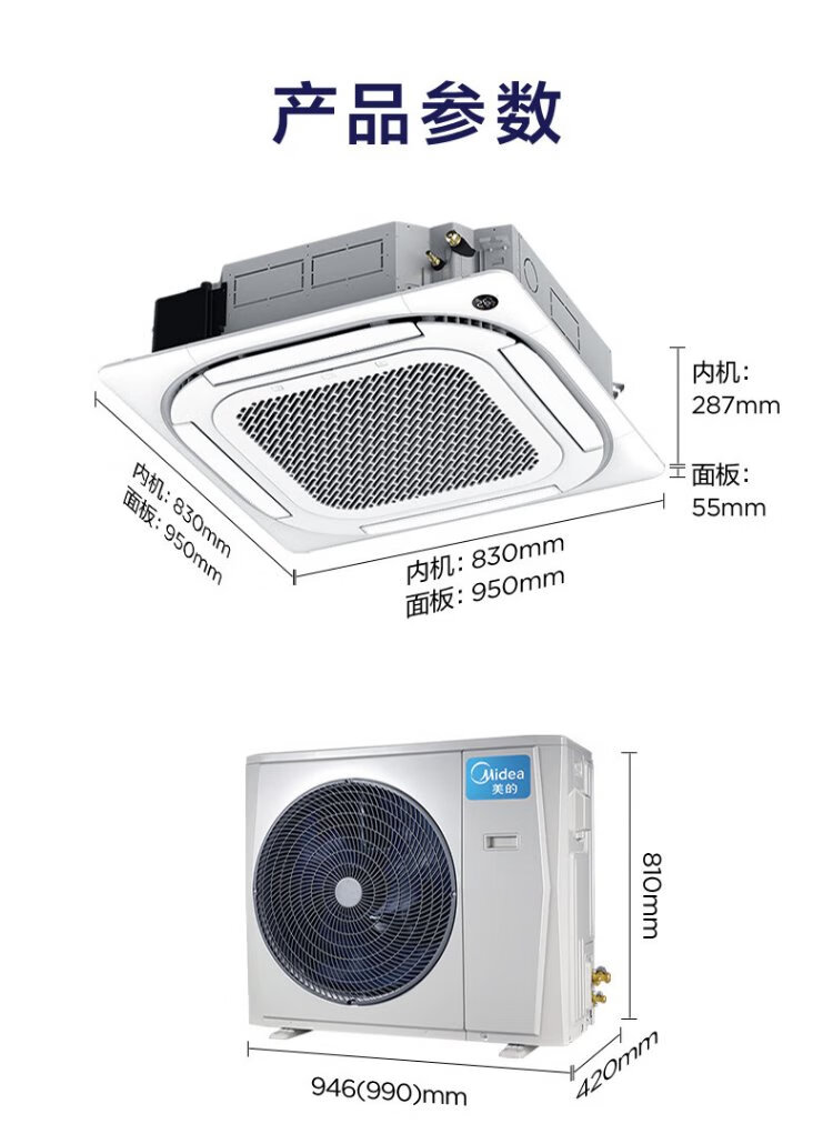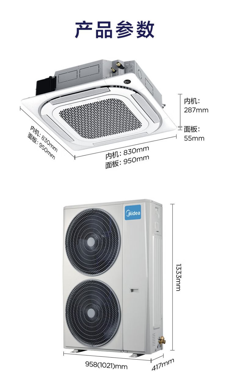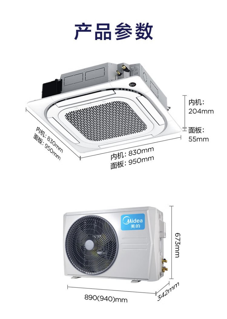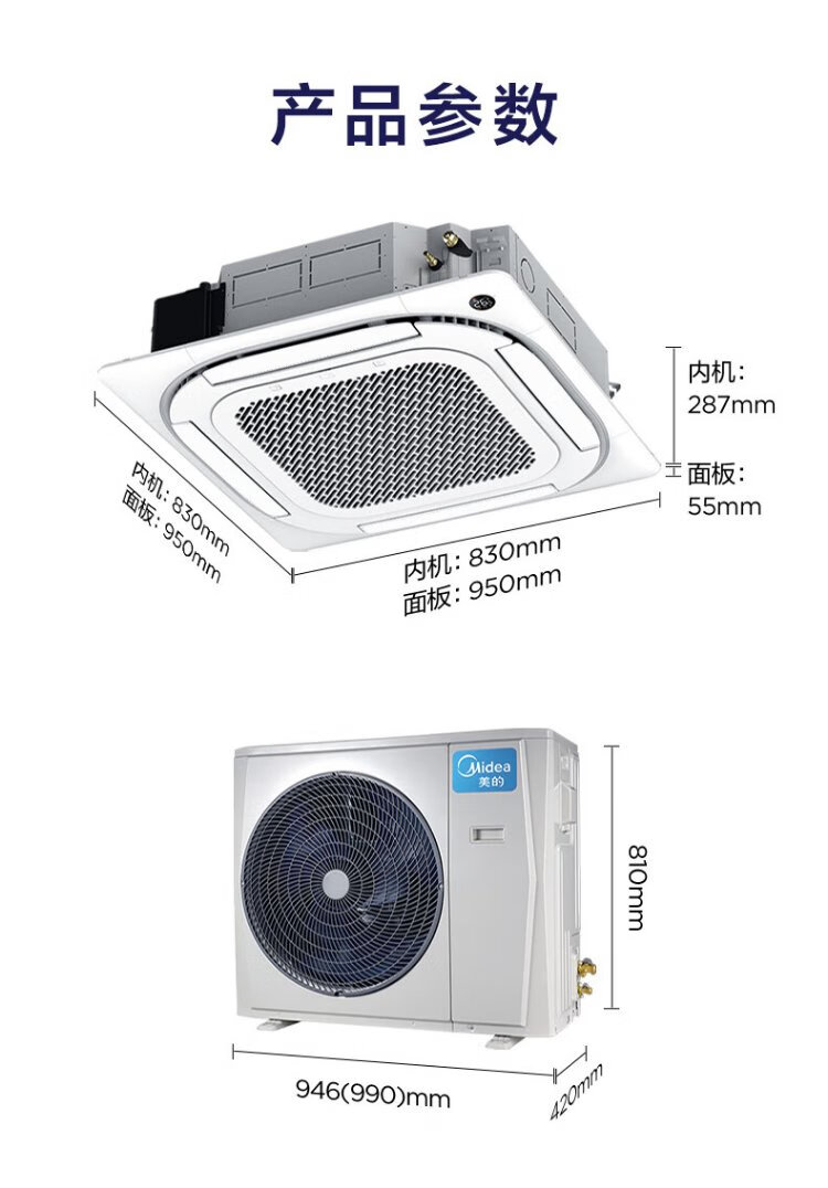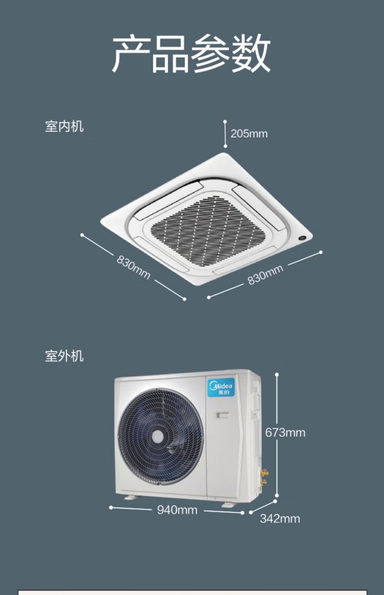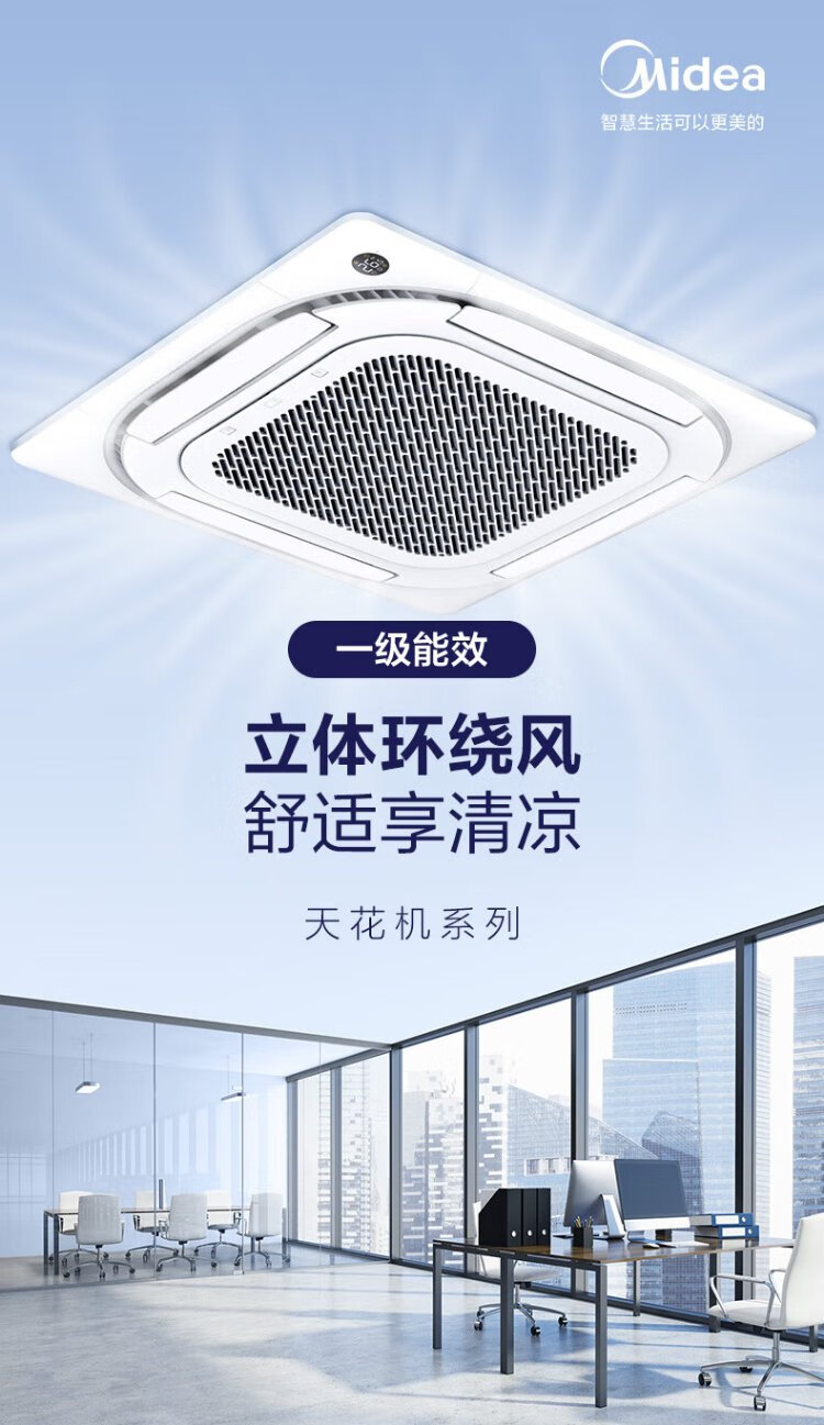 Midea central air conditioner ceiling air conditioner 2 hp 3 hp 5 hp first class energy efficiency variable frequency windless embedded one-to-one shop household commercial factory air conditioner home appliance subsidy 3 hp first class energy efficiency heating and cooling frequency conversion 220V national subsidy