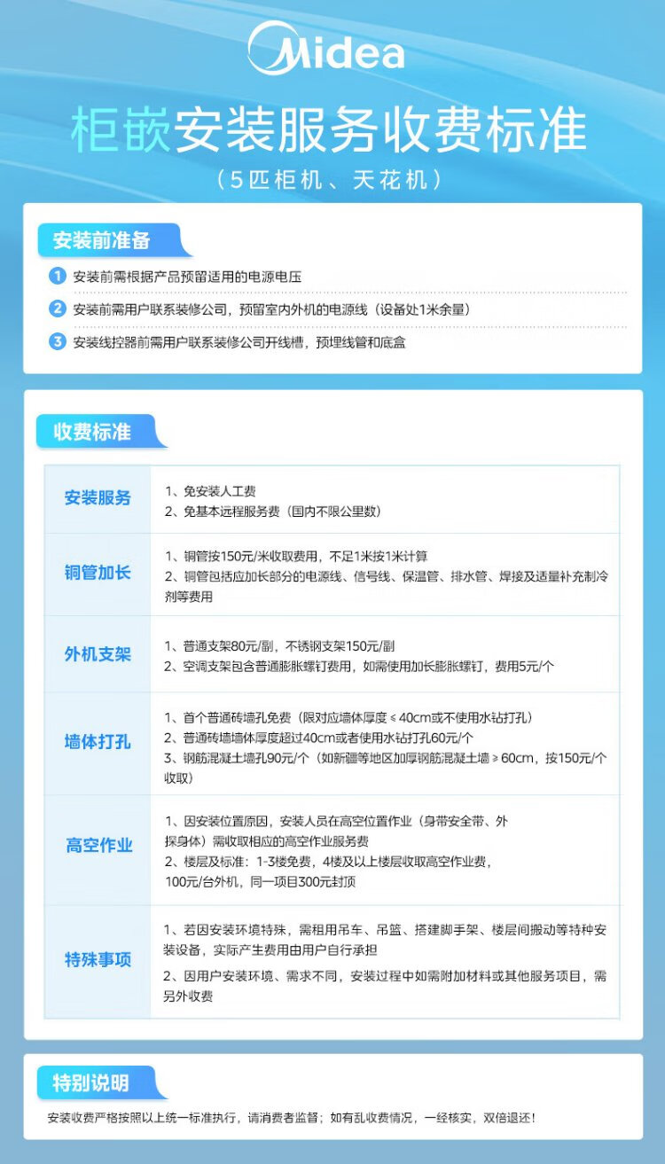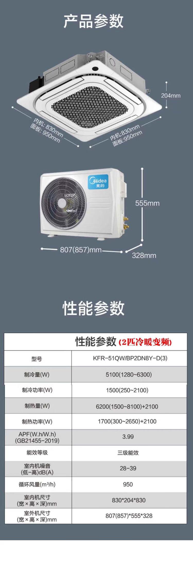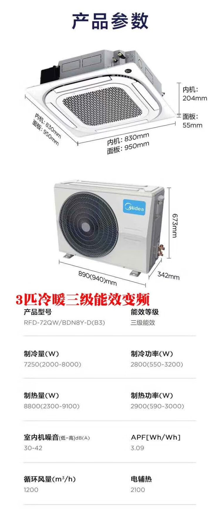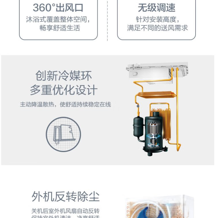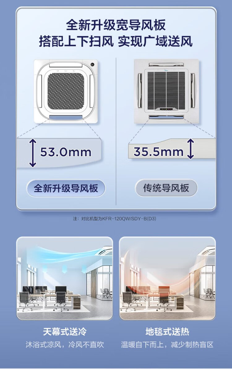 Midea central air conditioner ceiling air conditioner 2 hp 3 hp 5 hp first class energy efficiency variable frequency windless embedded one-to-one shop household commercial factory air conditioner home appliance subsidy 3 hp first class energy efficiency heating and cooling frequency conversion 220V national subsidy