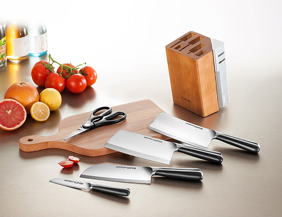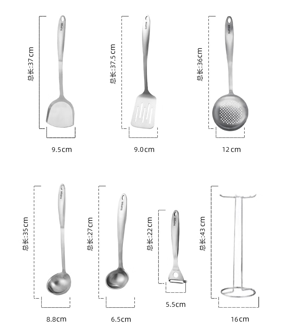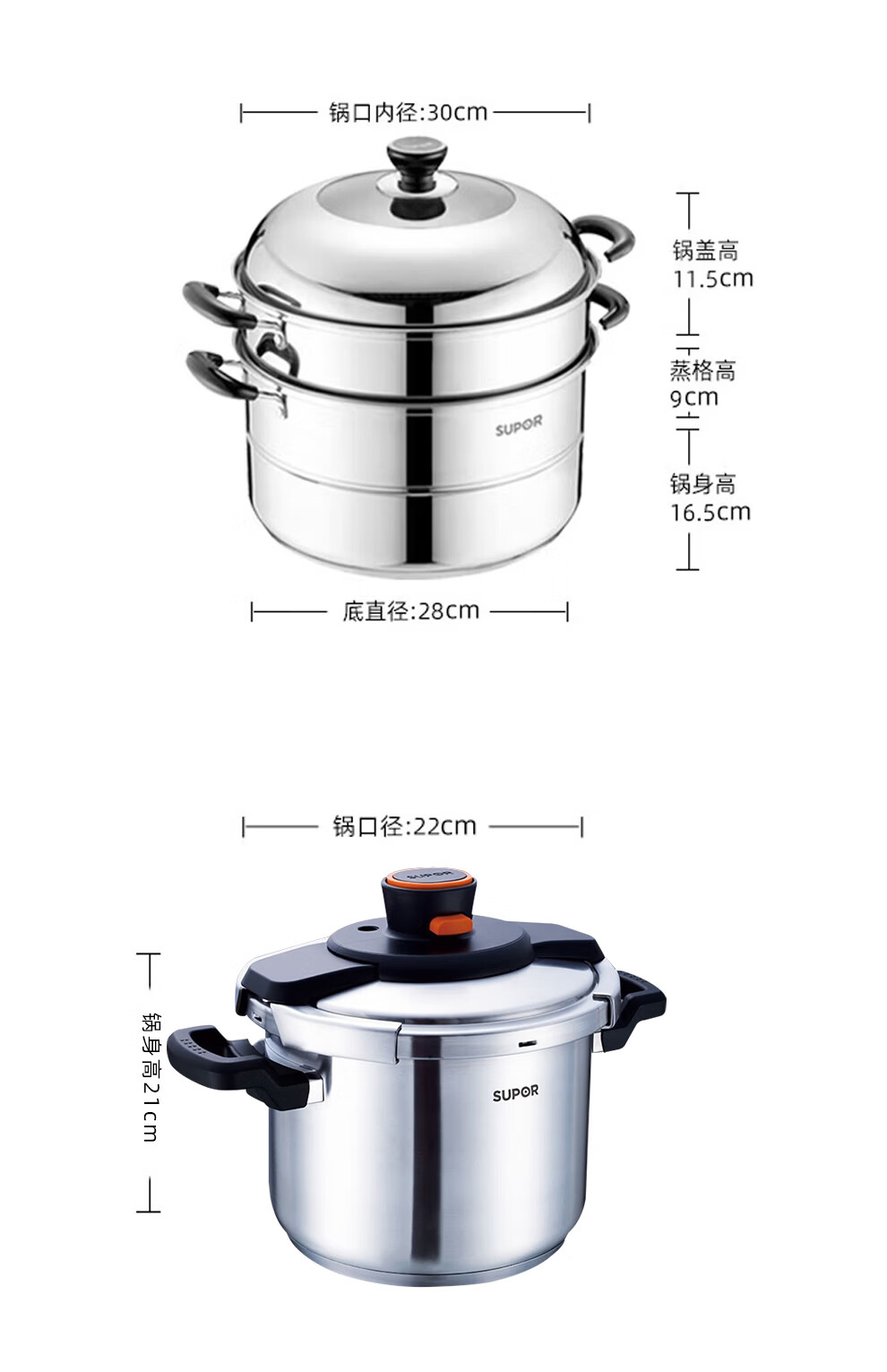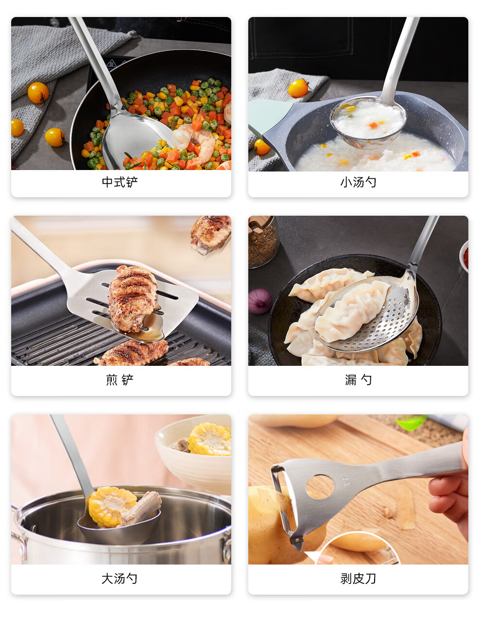 SUPOR pot combination set 32cm stainless steel wok pressure cooker steamer soup pot milk pot set knife set spatula 19-piece set stainless steel pot set