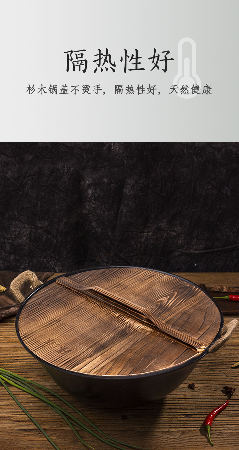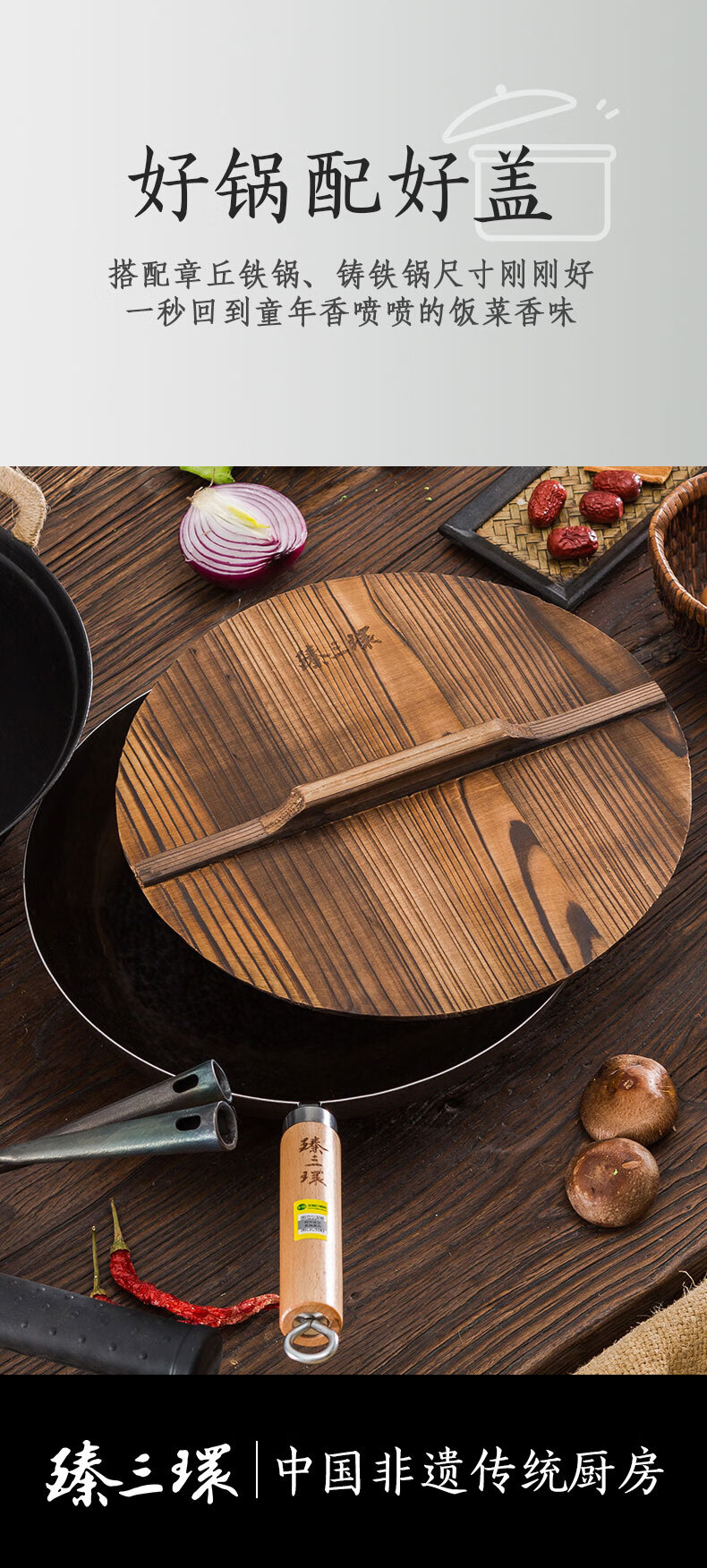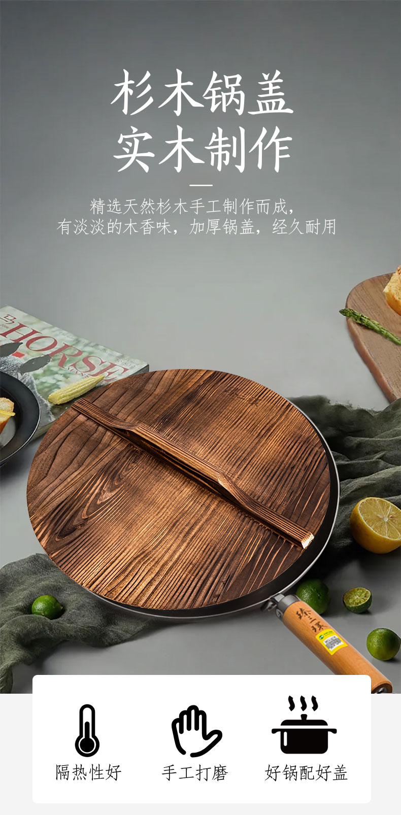 Zhensanhuan Zhangqiu iron pot, old carpenter handmade fir wok lid, carbonized wooden lid (exclusively for Zhensanhuan iron pot) 32cm