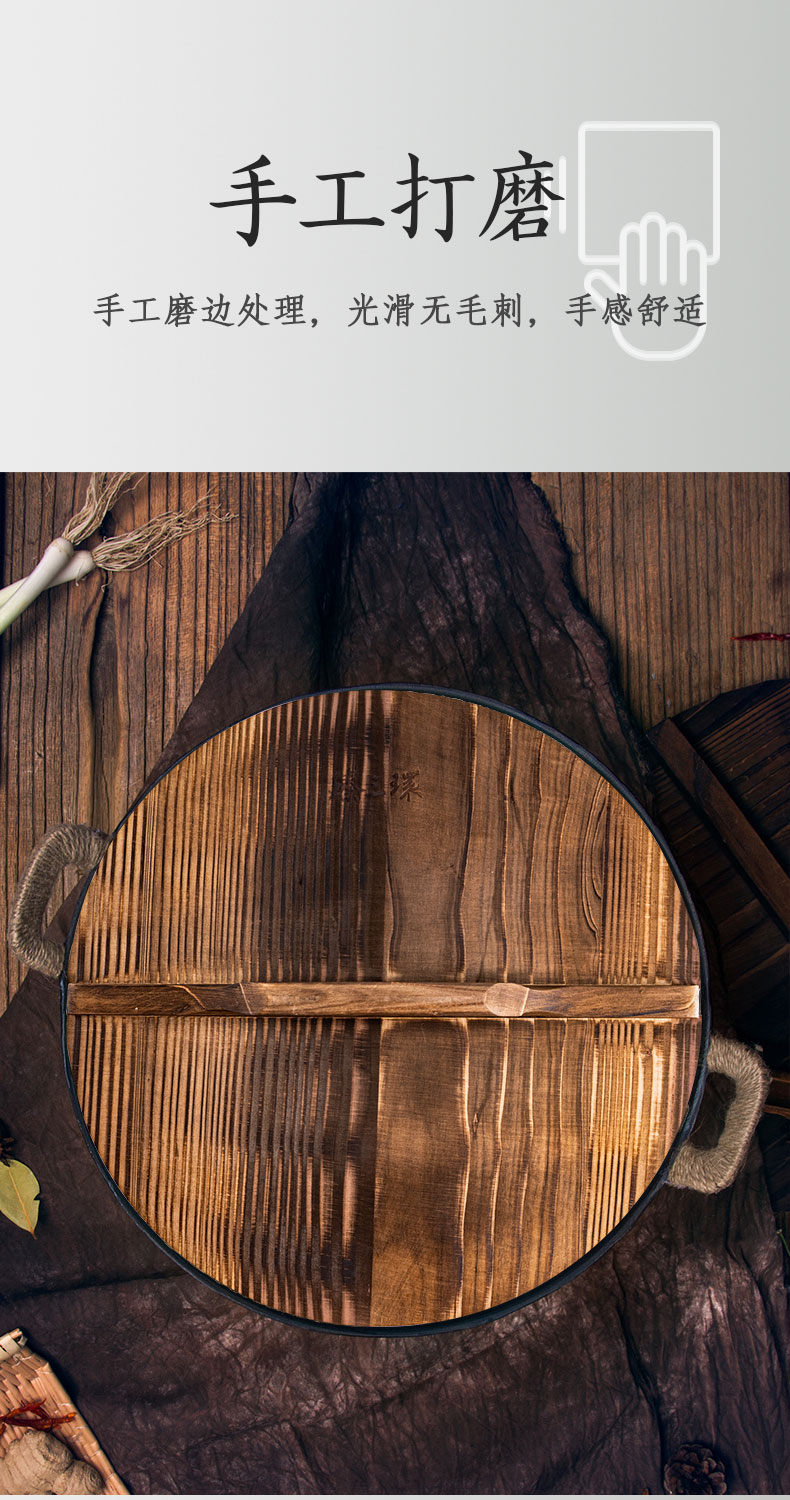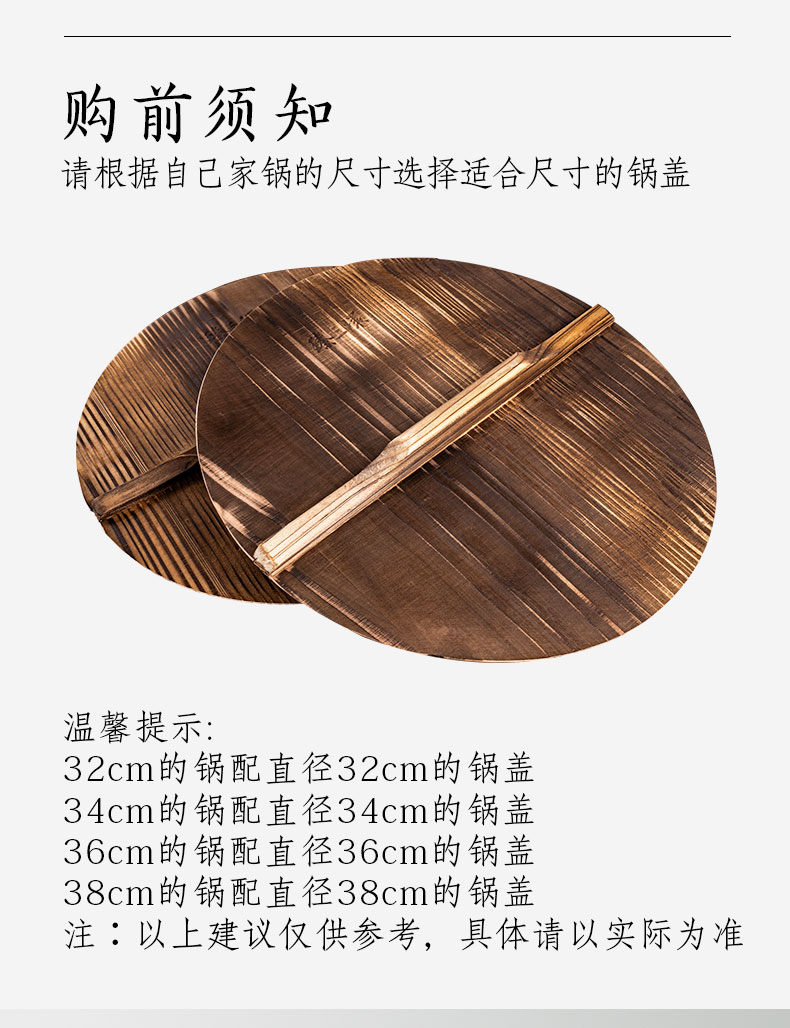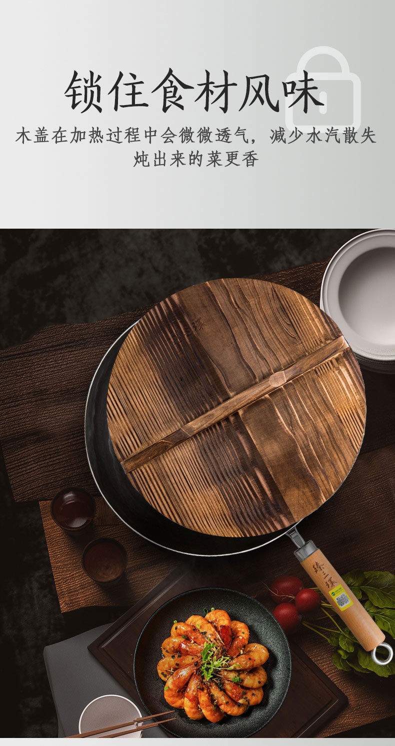 Zhensanhuan Zhangqiu iron pot, old carpenter handmade fir wok lid, carbonized wooden lid (exclusively for Zhensanhuan iron pot) 32cm