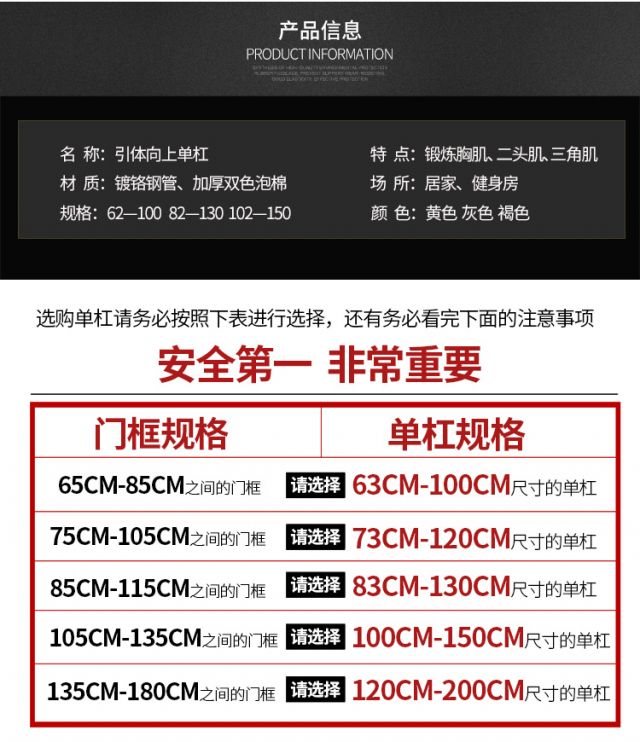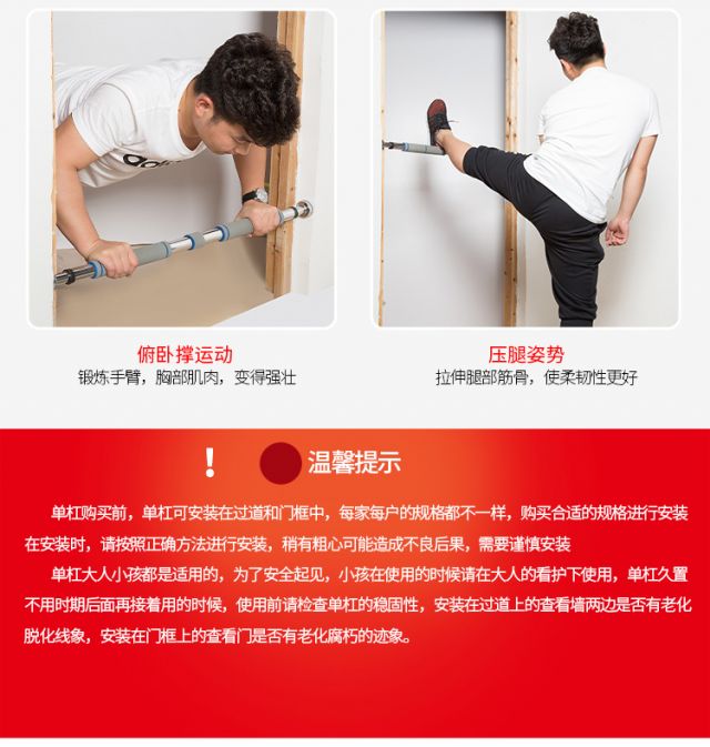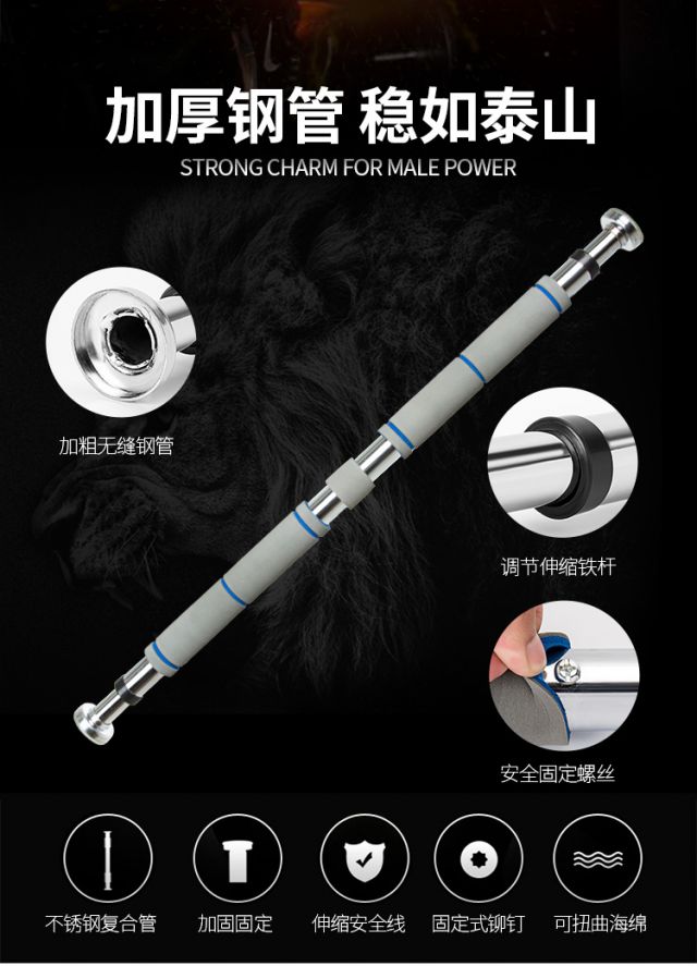 Huamin horizontal bar indoor door horizontal bar fitness pull-up equipment wall horizontal bar high school entrance examination horizontal bar gray 82-130 (suitable for door frames/walls between 82-120 cm)