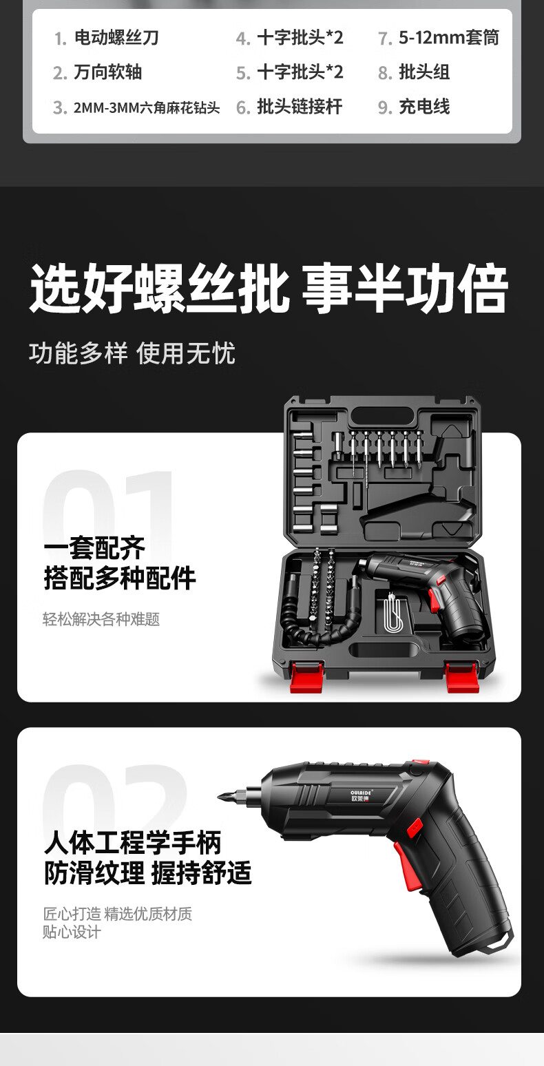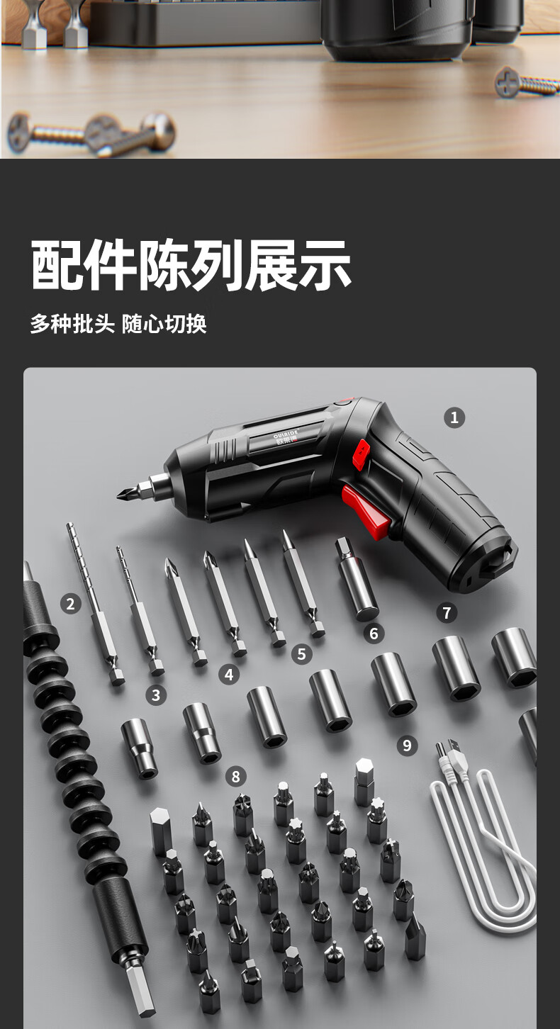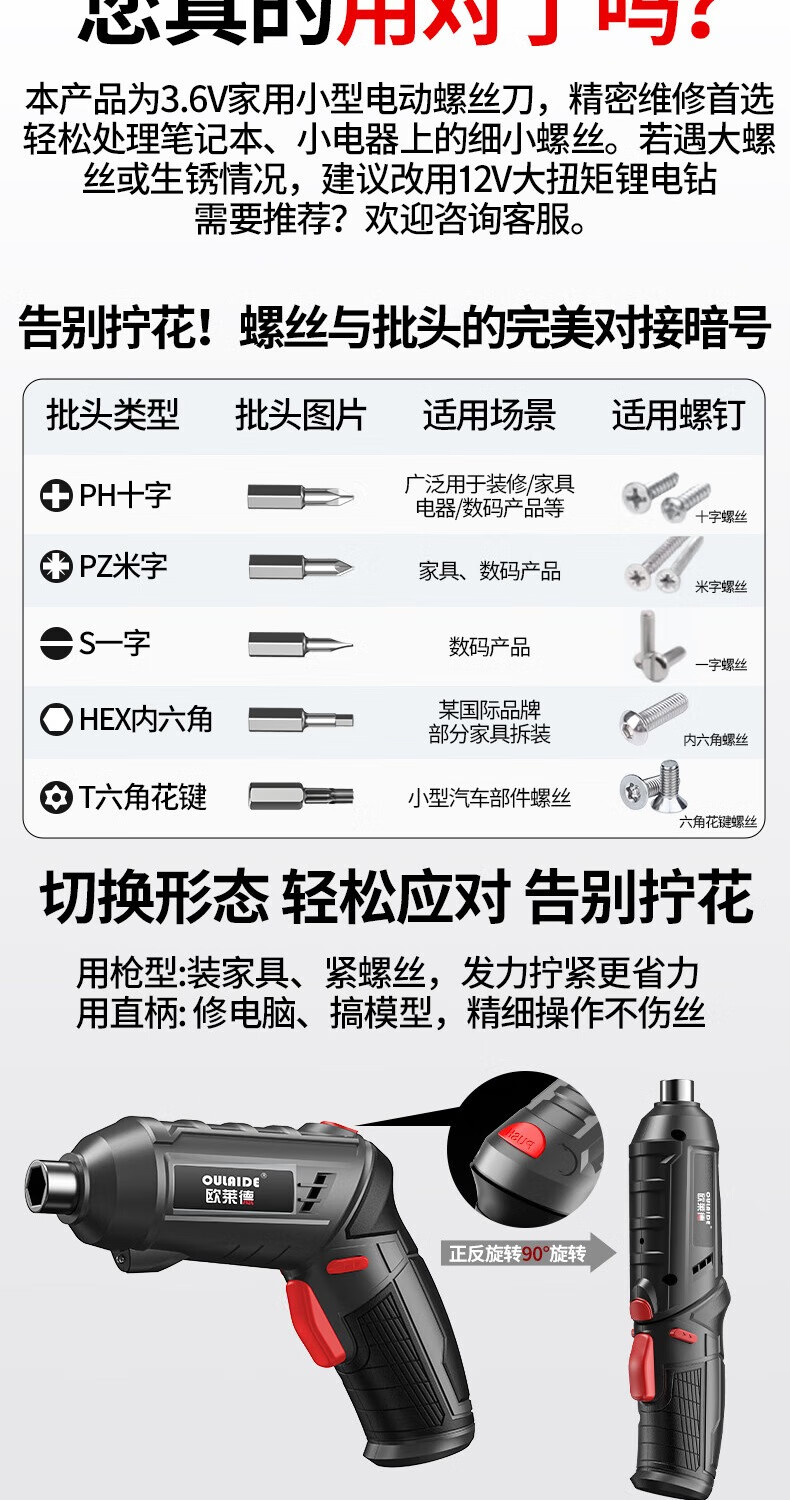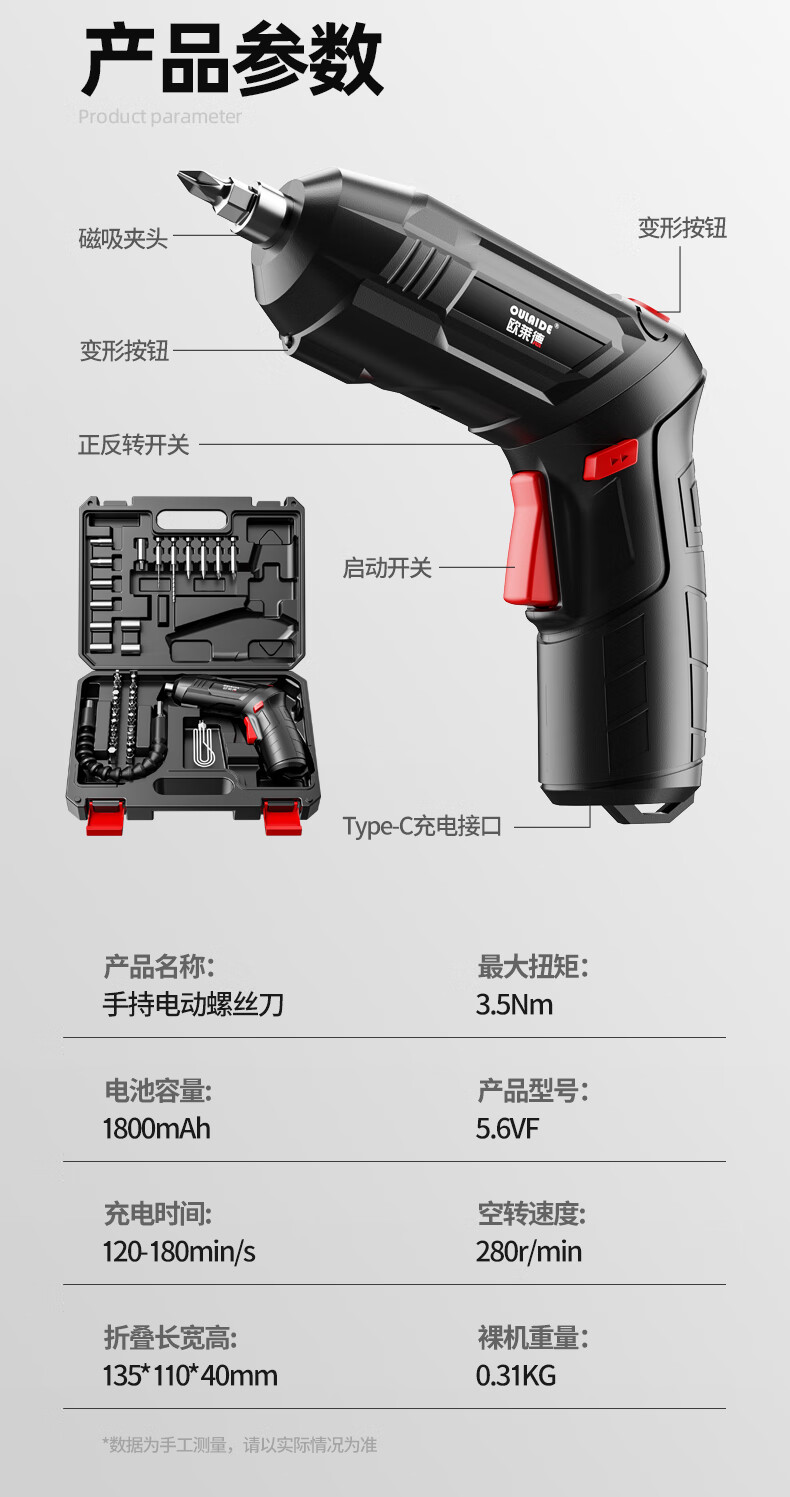 OLED German OLED 5.6VF small electric hand drill electric screwdriver set screwdriver bit home multi-function charger super power two-level reduction model + 18-piece set + suitcase