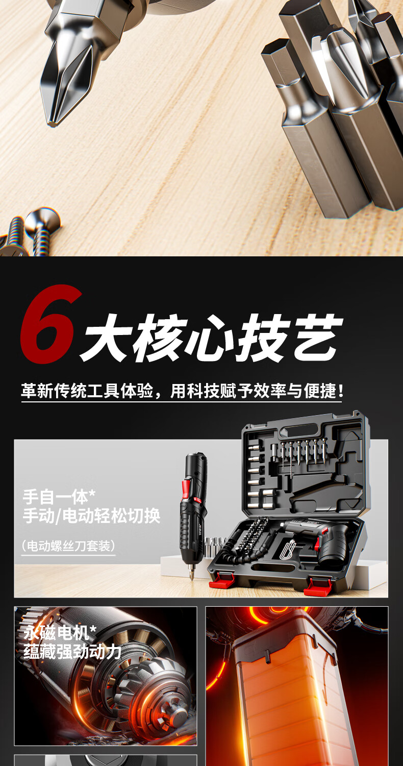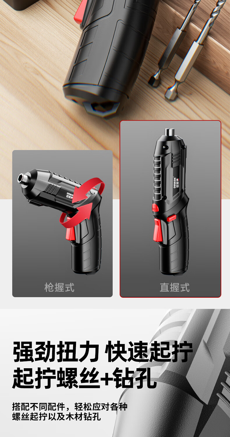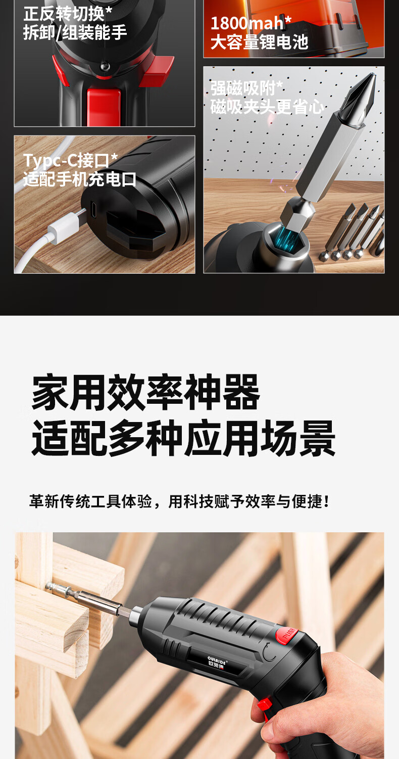 OLED German OLED 5.6VF small electric hand drill electric screwdriver set screwdriver bit home multi-function charger super power two-level reduction model + 18-piece set + suitcase