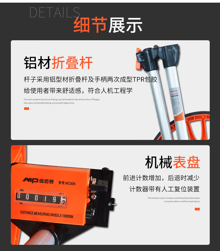 Newmaip distance measuring wheel hand push roller car mechanical distance meter roller ruler push ruler electronic digital display high precision measuring instrument handbrake mechanical wheel - upgraded version