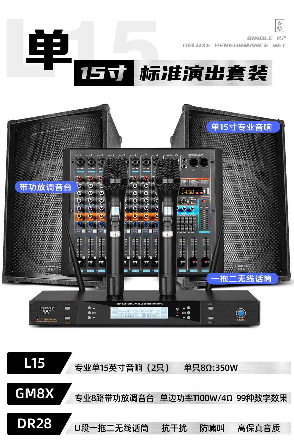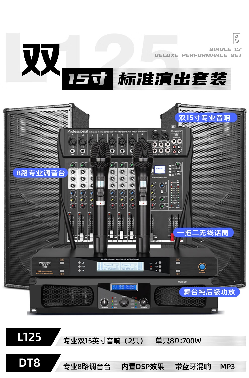 Depusheng professional stage high-power speaker L125 dual 15-inch wedding performance conference campus broadcast audio outdoor HiFi set high-power speaker double bass 15-inch standard performance set