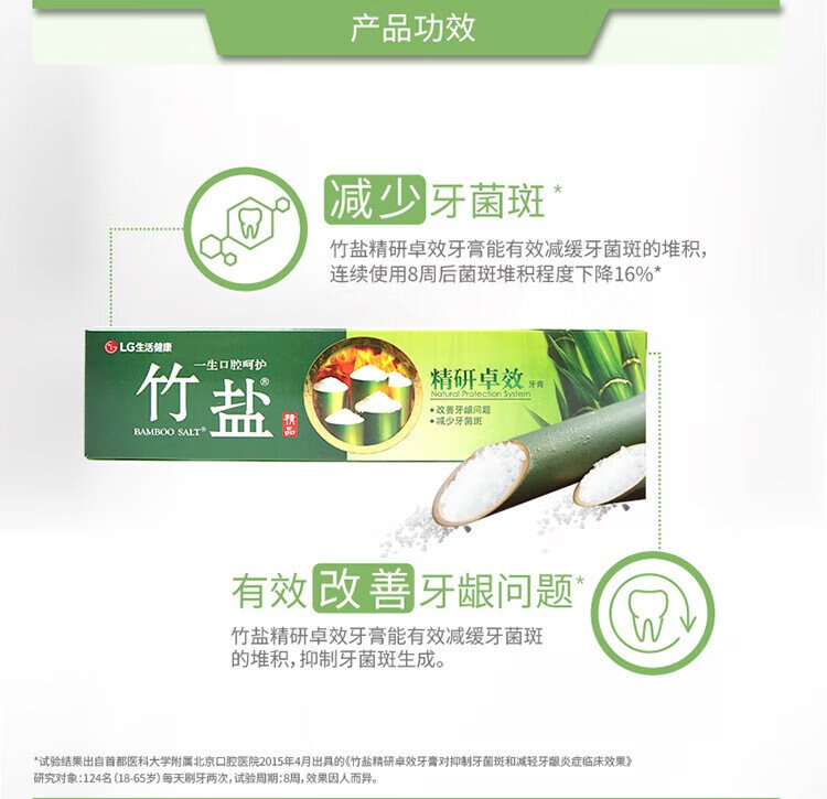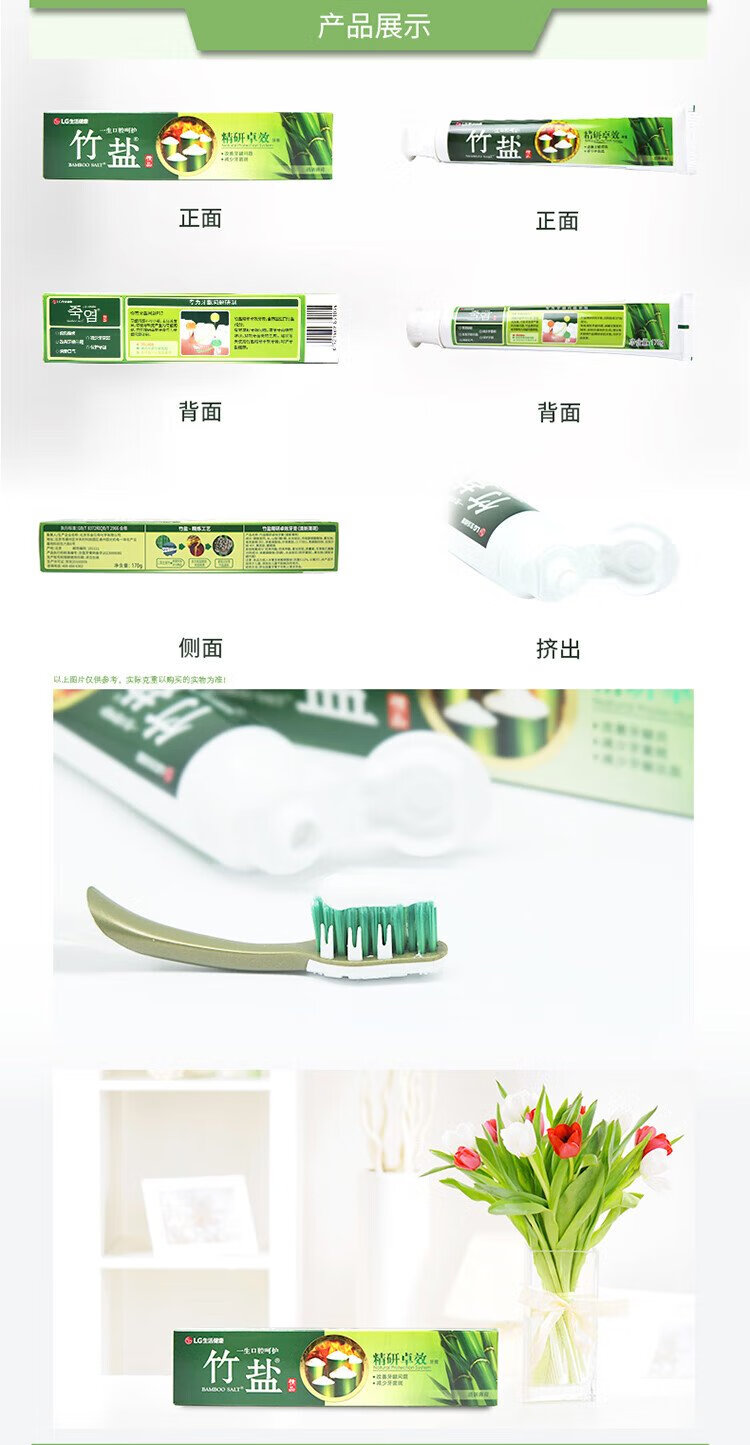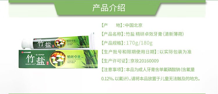 Bamboo salt LG refined effective toothpaste 170g*1 tube fresh mint refreshing taste reduces tooth stains and cleans the mouth