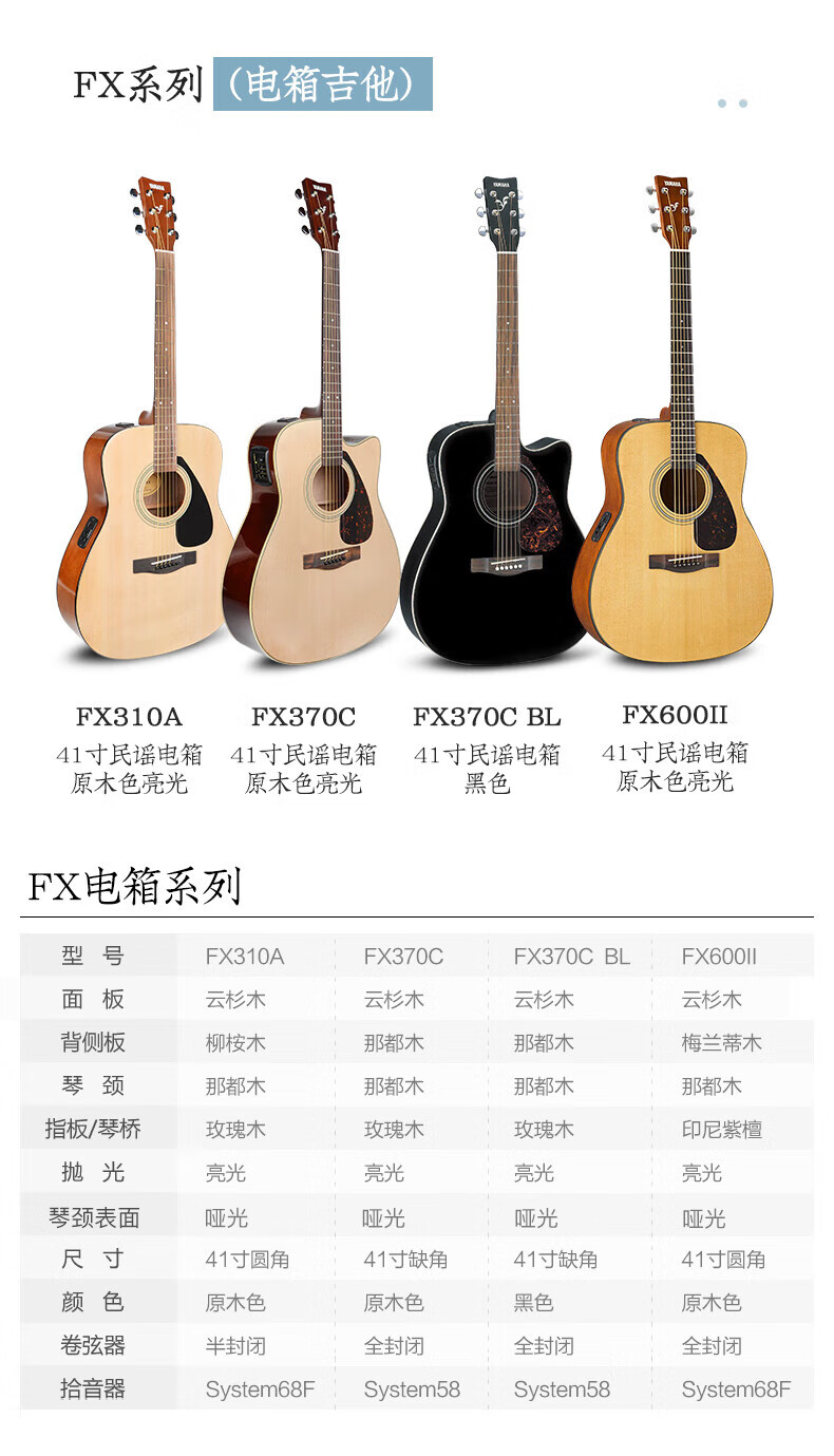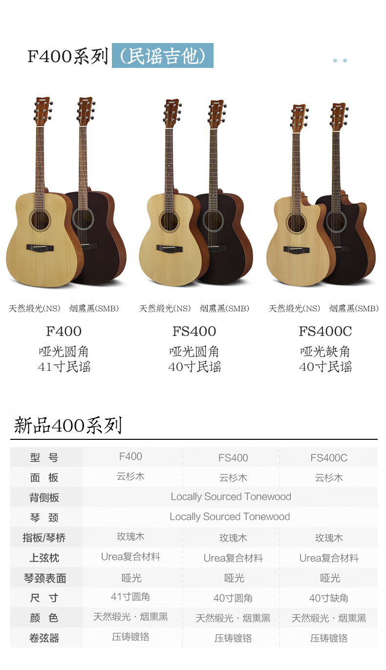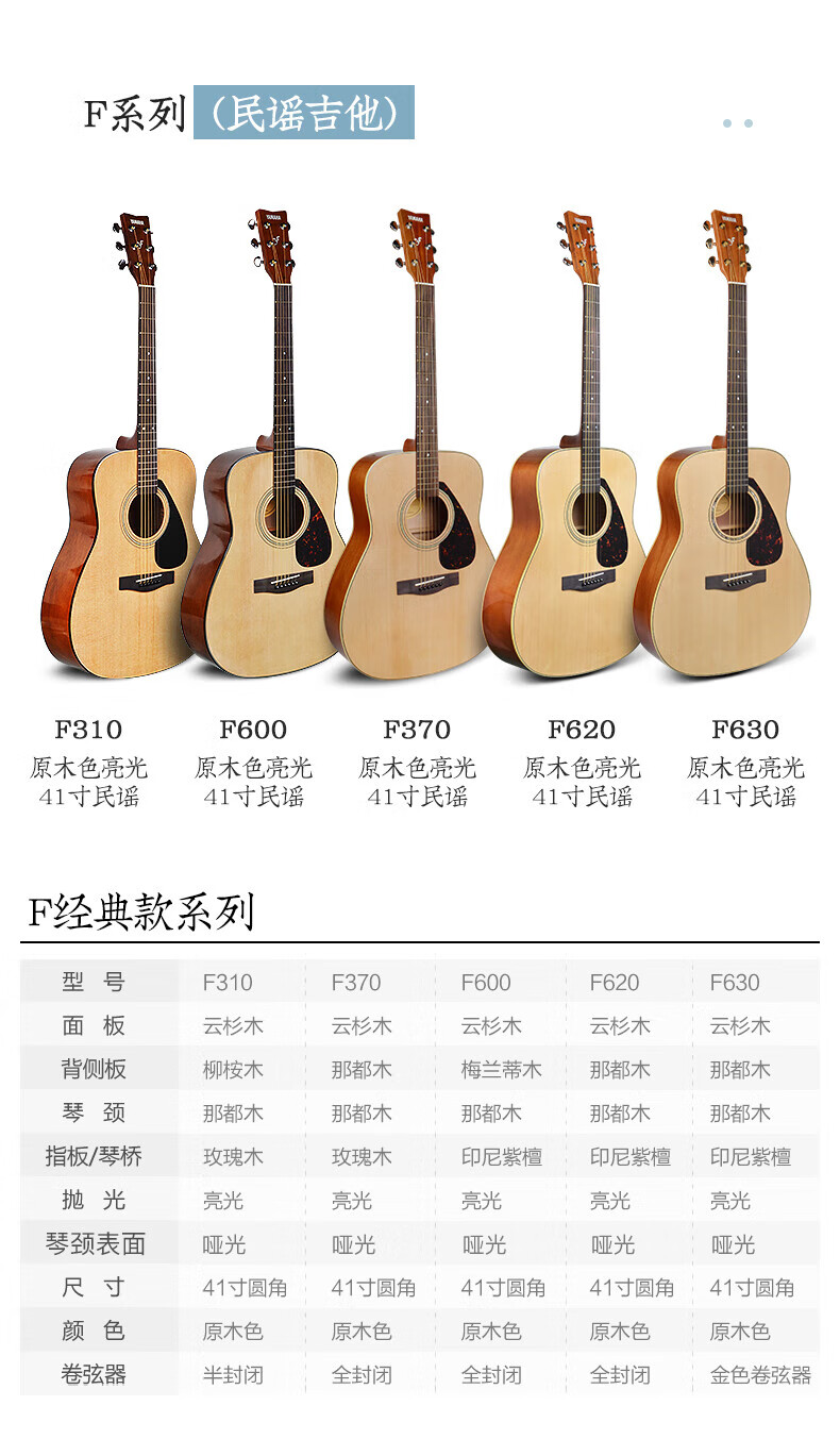 Yamaha (YAMAHA) guitar folk novice beginners entry level examination F310/F600 series electric box students new F400 acoustic guitar 41-inch wood color F310NT