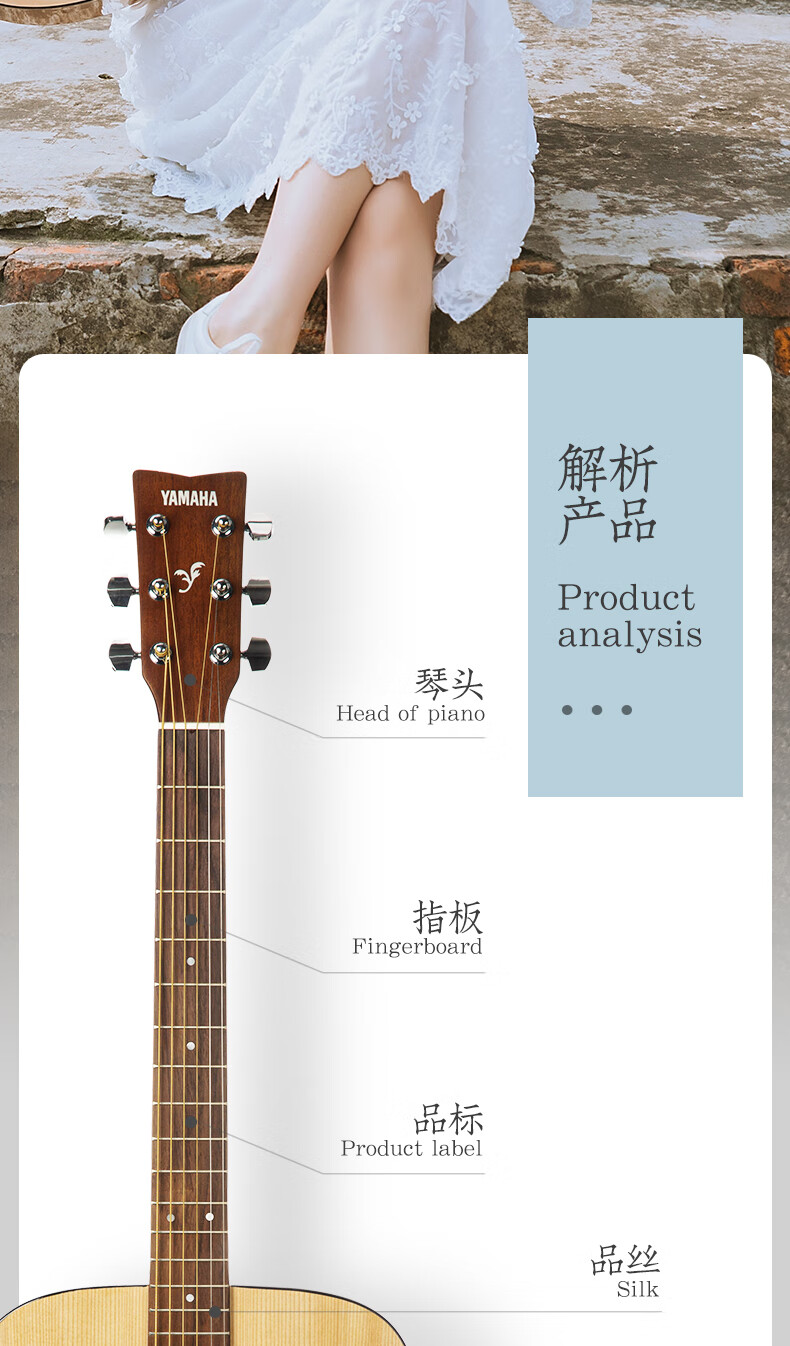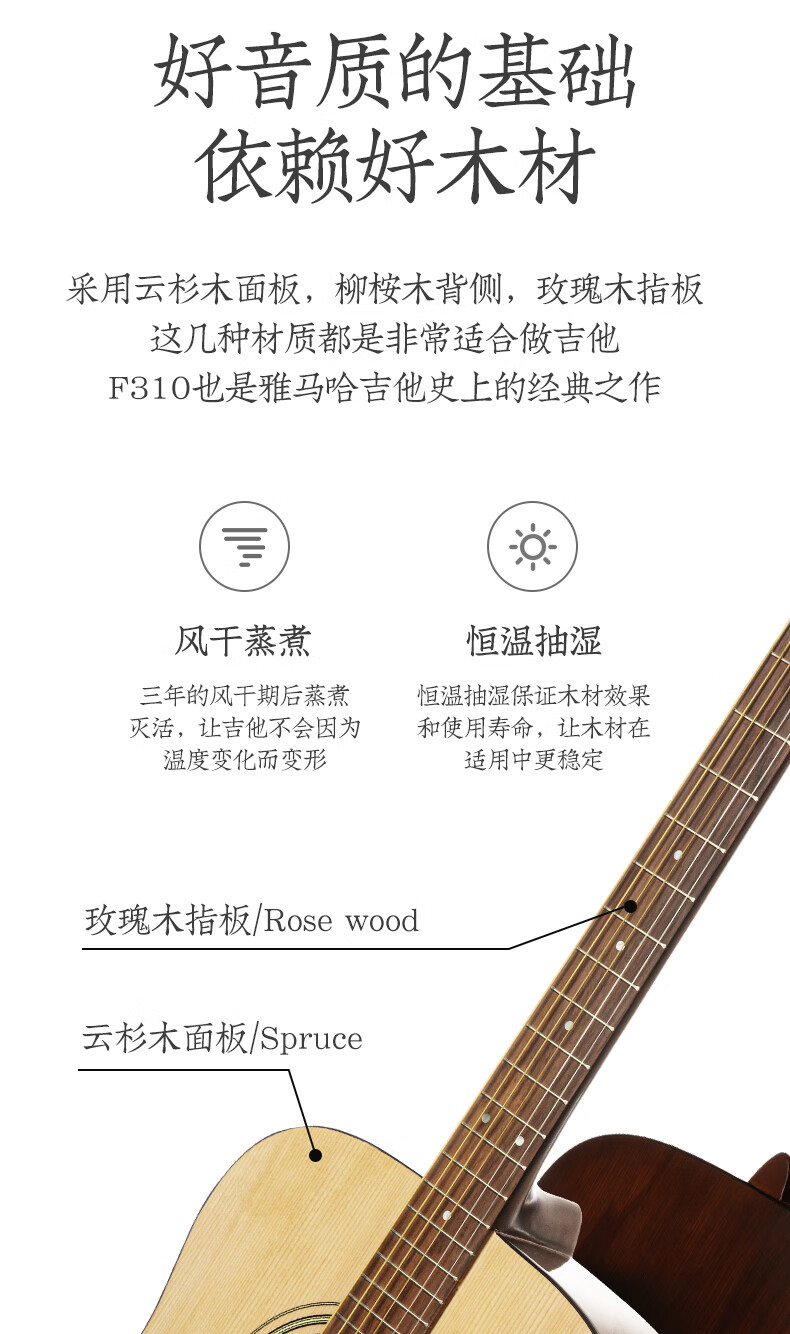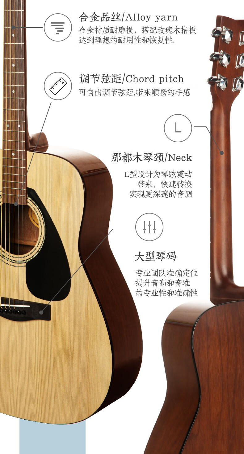 Yamaha (YAMAHA) guitar folk novice beginners entry level examination F310/F600 series electric box students new F400 acoustic guitar 41-inch wood color F310NT