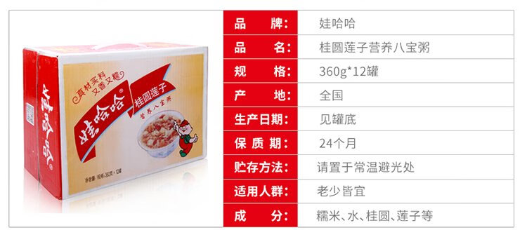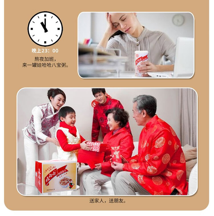 Wahaha Holiday Gift Box Longan Lotus Seed Eight Treasure Porridge 360g*12 cans Nutritious cereal breakfast ready-to-eat meal replacement