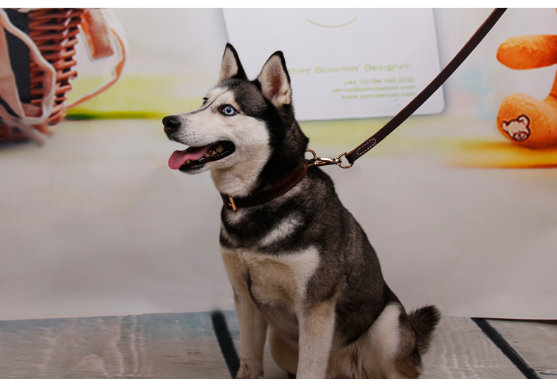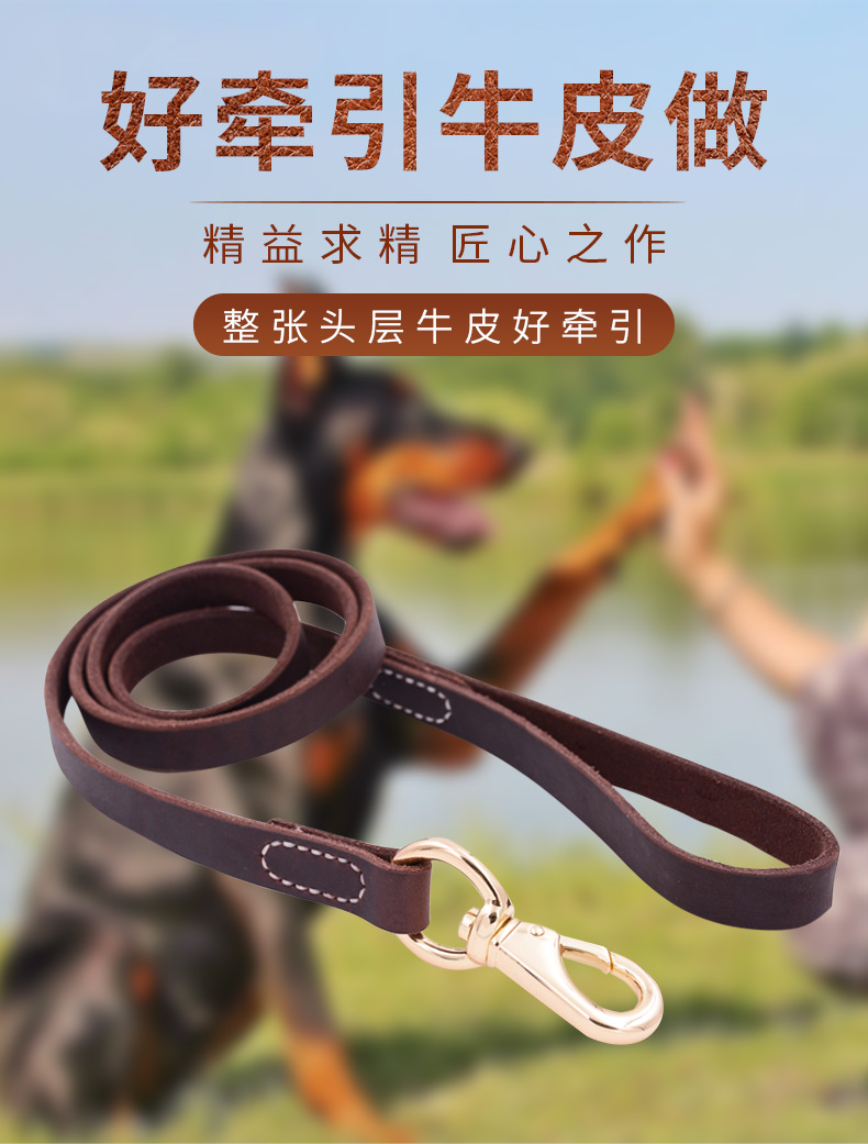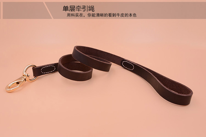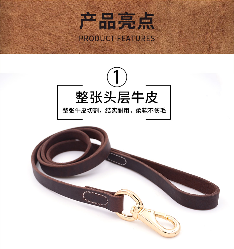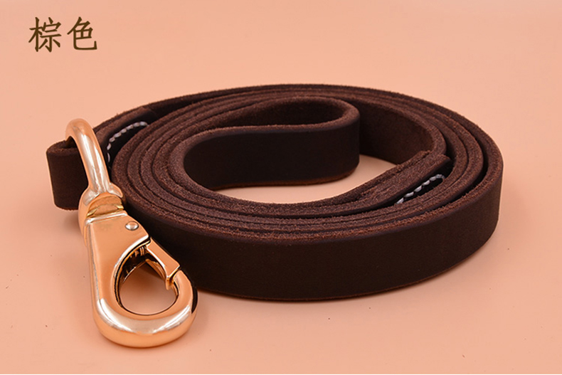 AYOUA dog leash collar, medium and large dog rope, cowhide golden retriever dog leash, Labrador Retriever, German Shepherd, dark brown, 1.1 meters long, leash (not including collar)