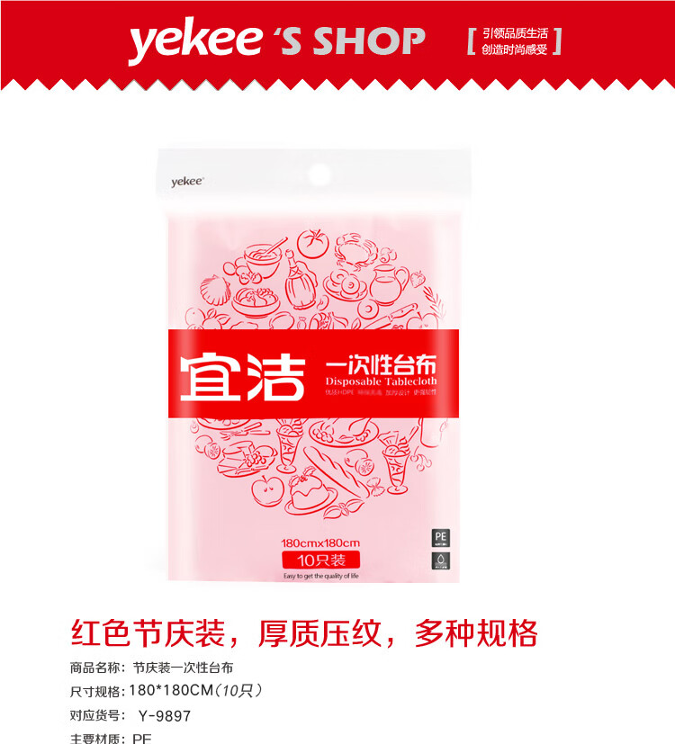 Yekee disposable tablecloths 10 pieces thick red tablecloth 180cmx180cmY-9897