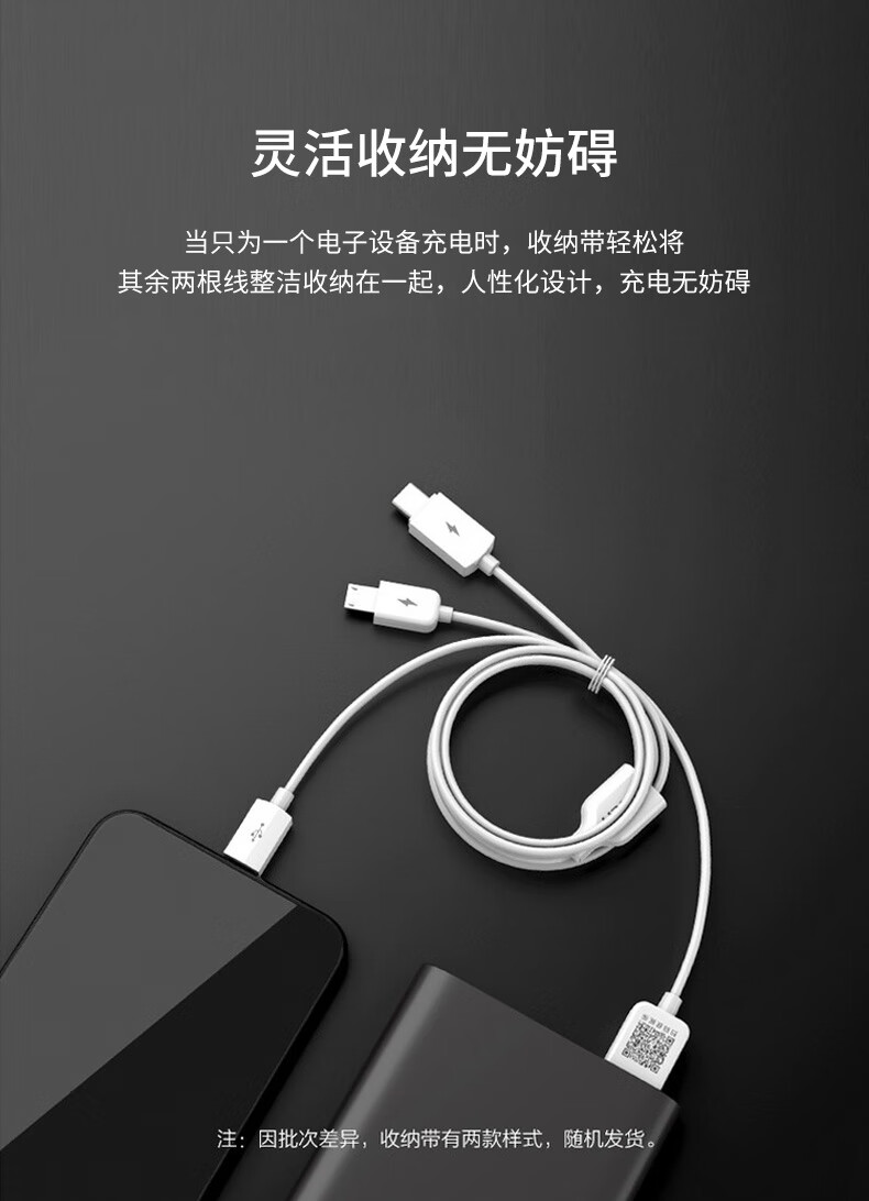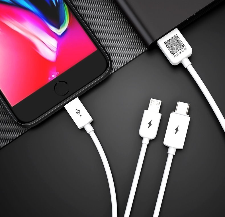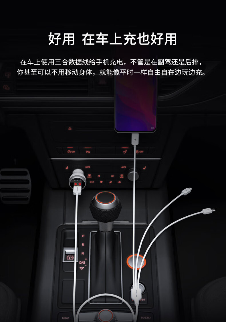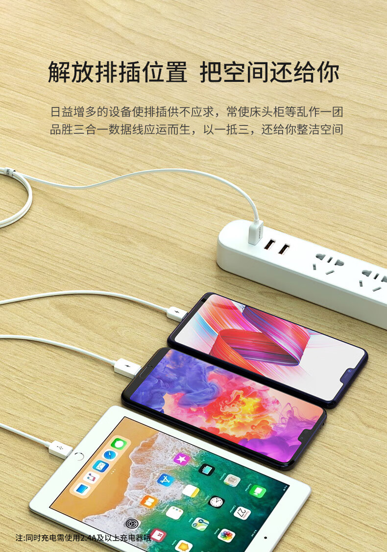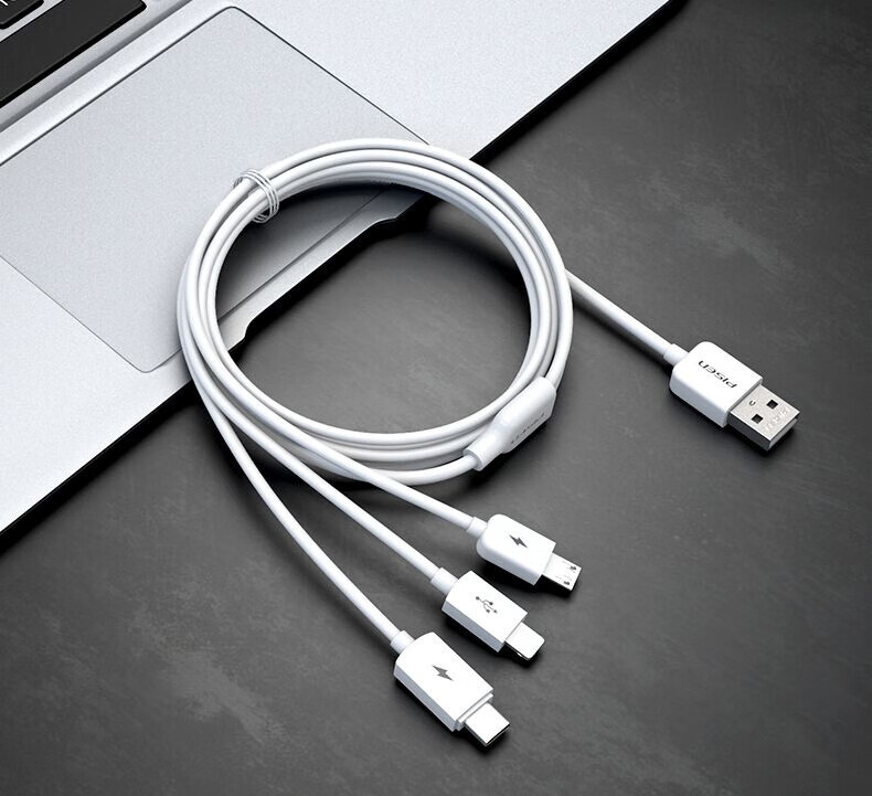PISEN three-in-one data cable multi-head USB multi-function data car charging cable one to three suitable for iPhone 15/16 Apple Android classic 1 meter white