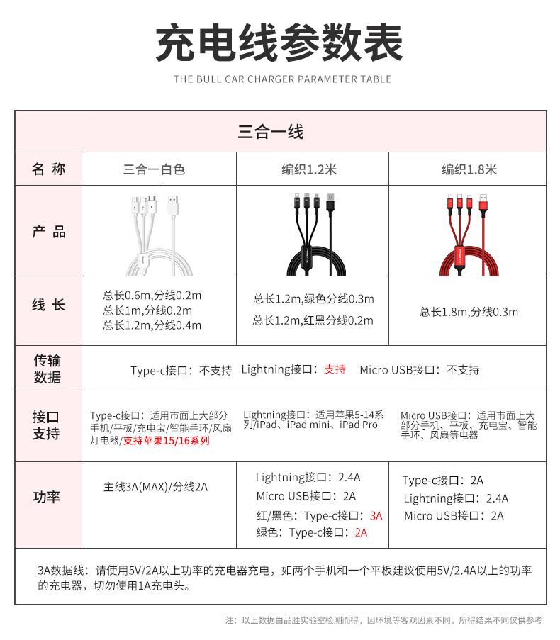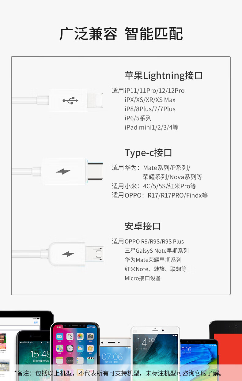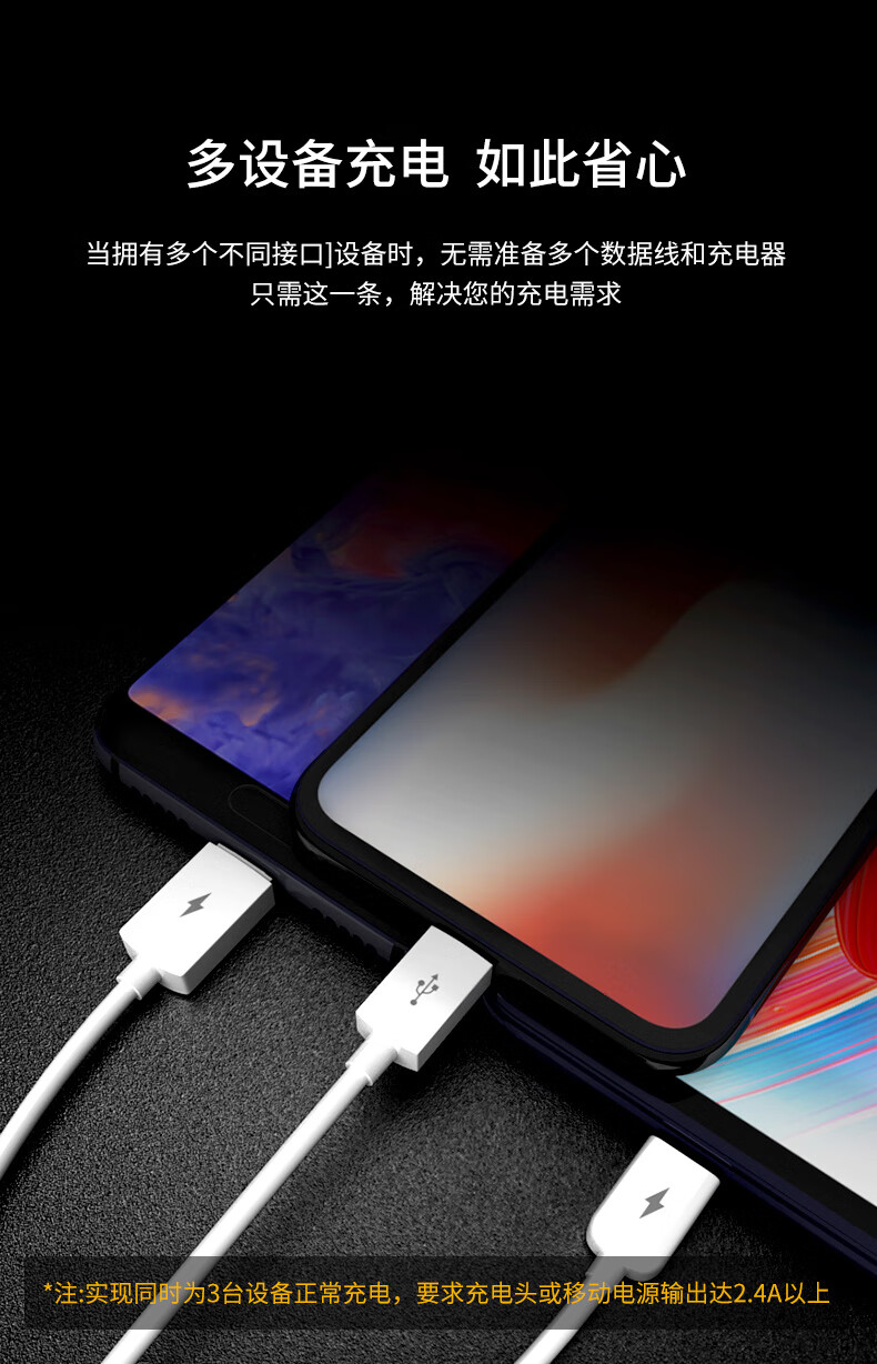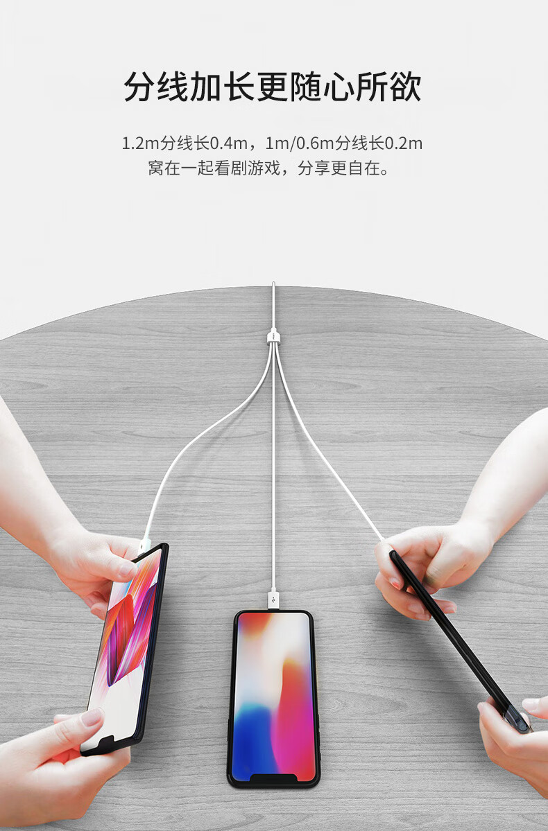PISEN three-in-one data cable multi-head USB multi-function data car charging cable one to three suitable for iPhone 15/16 Apple Android classic 1 meter white