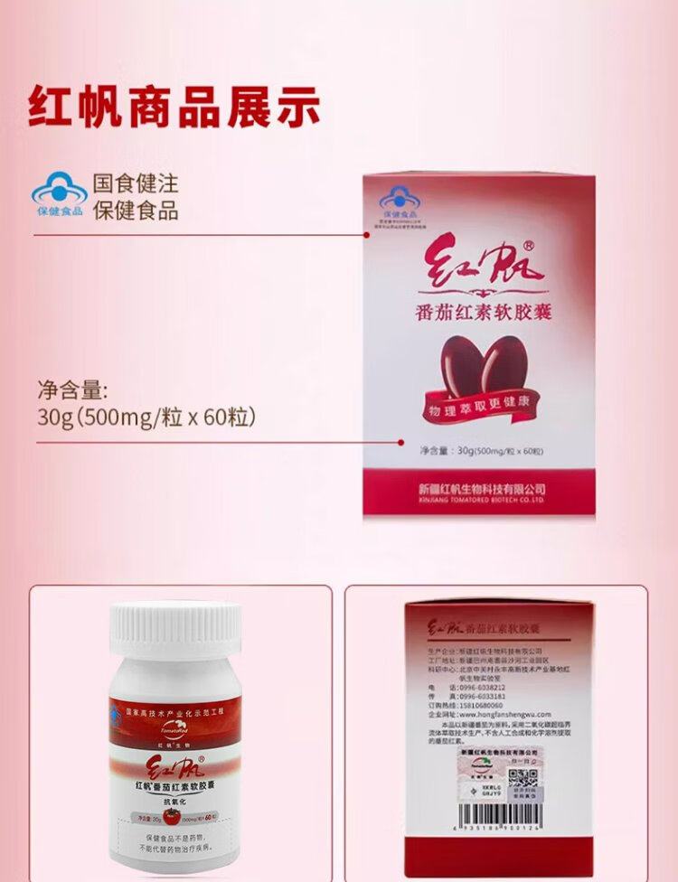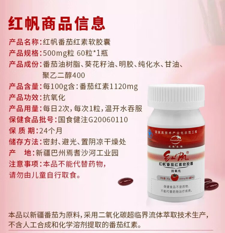 Hongfan R Lycopene Soft Capsule 500mg/capsule*60 capsules antioxidant