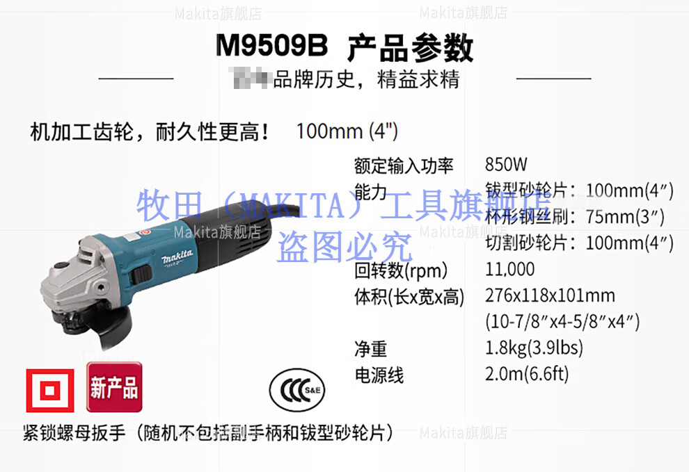 Makita Makita angle grinder cutting machine hand grinder tile household 100MM angle grinder M9509B power tool M9509B angle grinder 850W