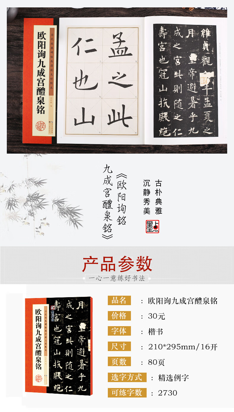 Ink dot copybook Ouyang Xun Jiucheng Palace Liquan inscription Regular script Tang European style European regular brush calligraphy copybook Original copy of Jiucheng Palace stele original copy European style regular script brush calligraphy copy Simplified Chinese marginalia 16 Kai Essence of past dynasty stele calligraphy