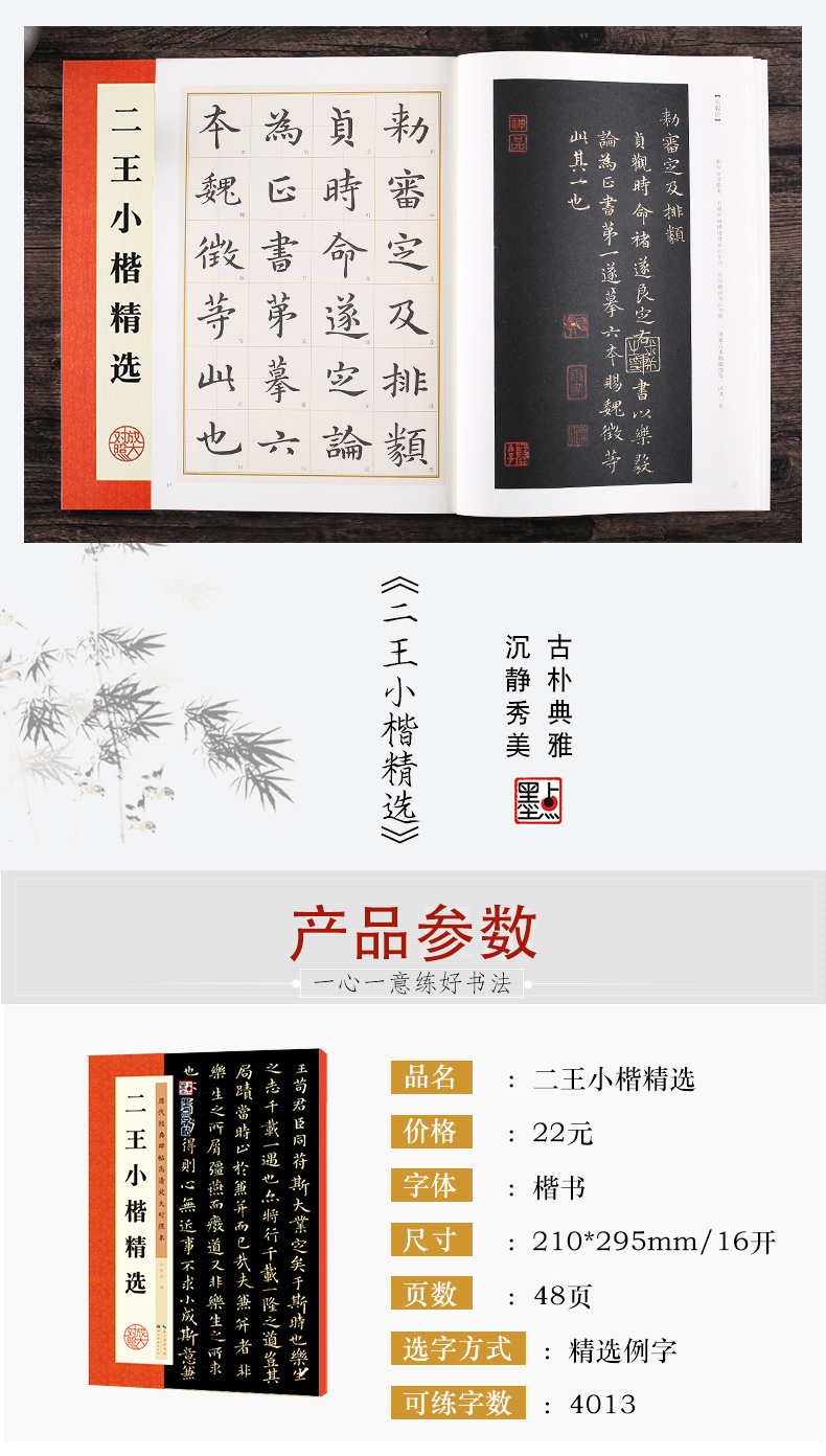 Ink dot copybook Wang Xianzhi Erwang Xiaokai Wang Xizhi Xiaokai Le Yi on Huang Ting Jing Wang Xianzhi Xiaokai Luo Shen Fu Thirteen Lines Adult Beginners Copying Erwang Xiaokai Brush Copybook Annotation Traditional Chinese Marginal Notes