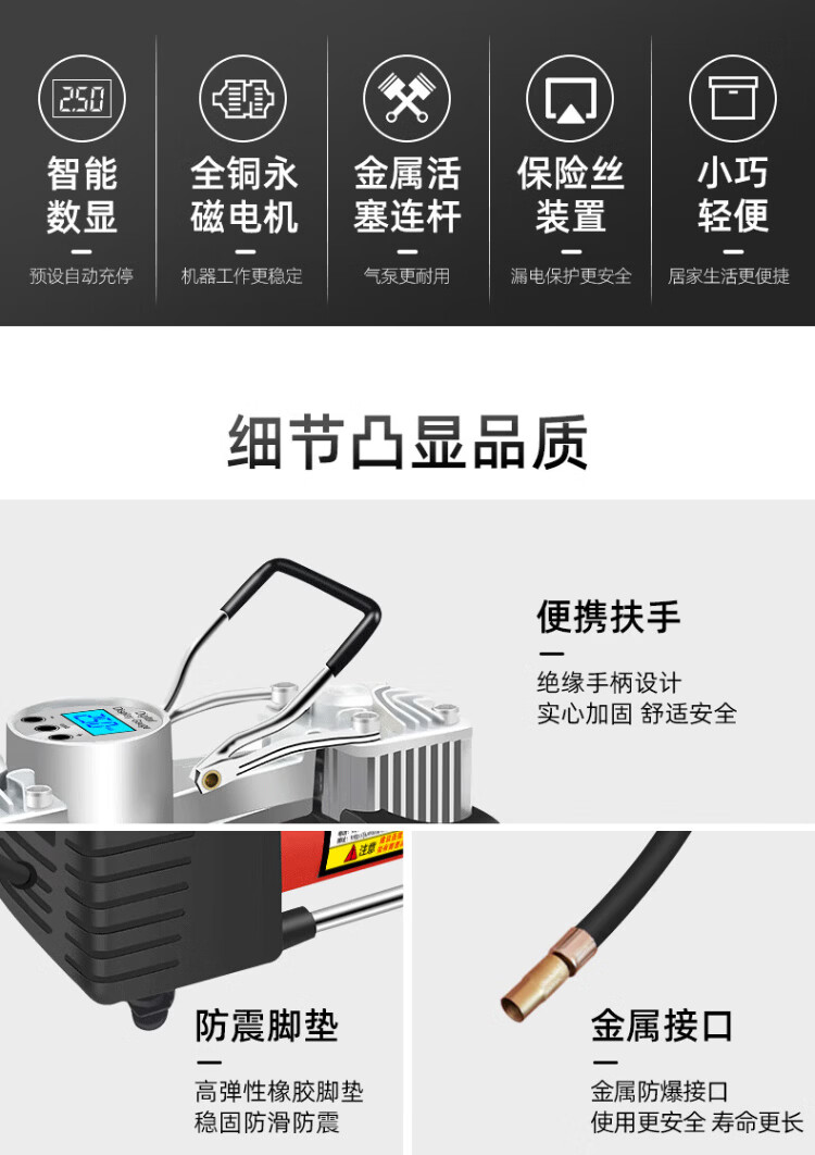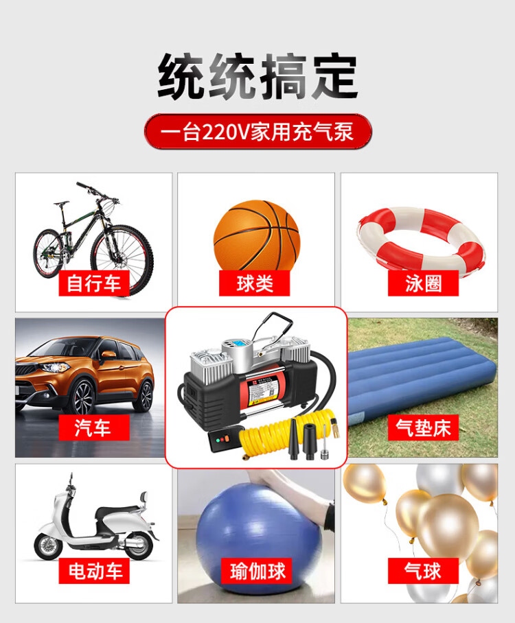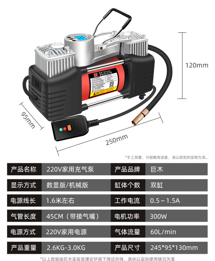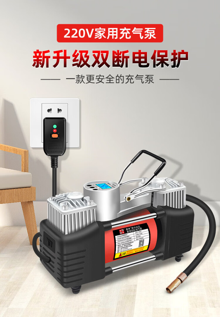 Jumu air pump 220v household double-cylinder high-power electric motorcycle bicycle pump car tire filling pump mechanical watch (with automatic trip) + 3m extension tube