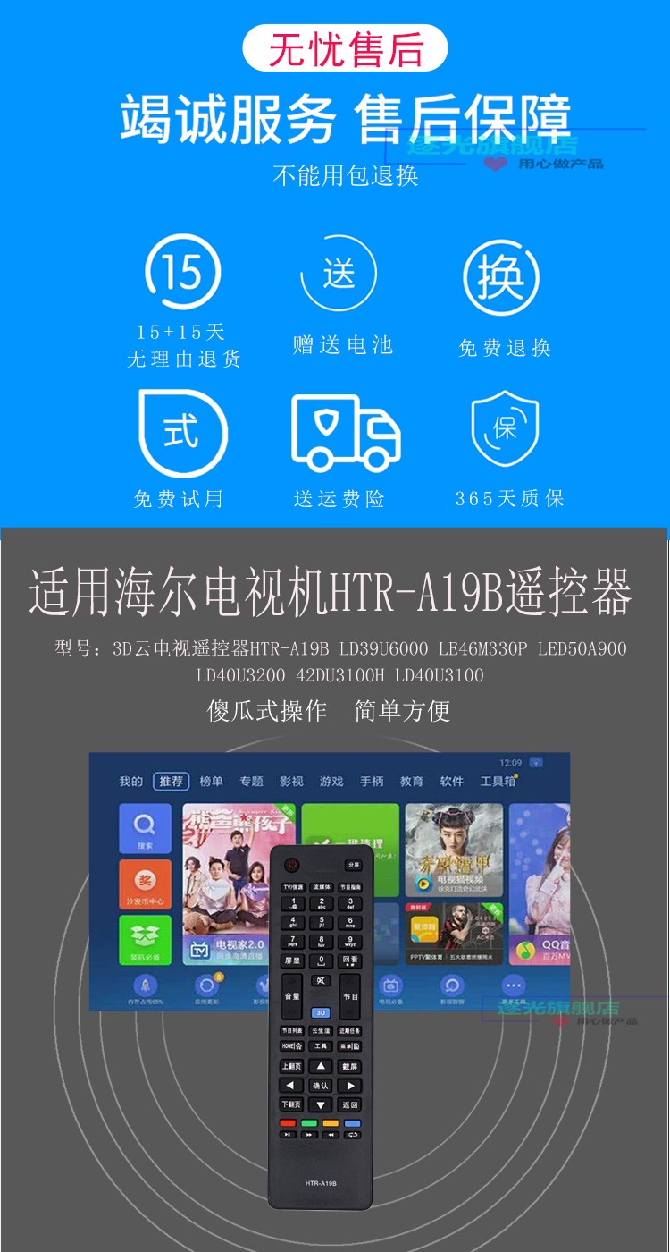 Chasing Light is suitable for Haier TV remote control HTR-A19B HTR-A18B HTR-A09 D3C. Select HTR-A19B by model.