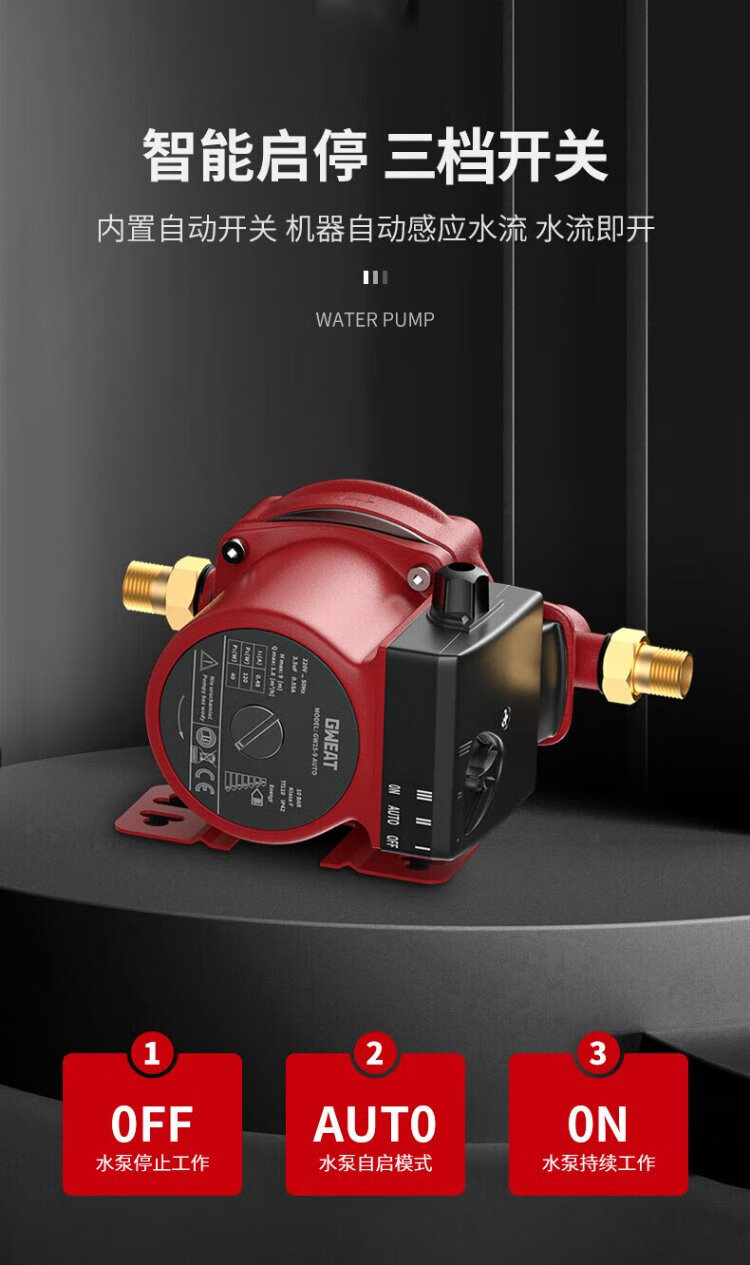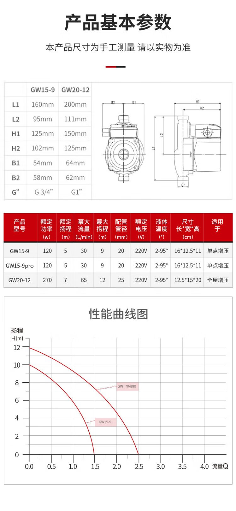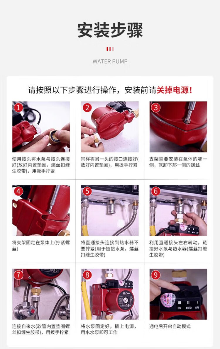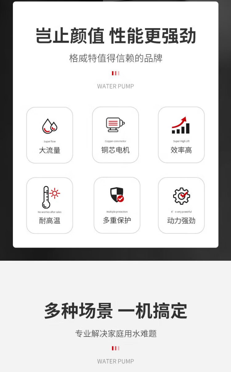 Geweit booster pump household whole house water heater tap water pressure pump hot and cold water fully automatic solar shielded pump pipe 15-9 original factory configuration (household light sound pump)