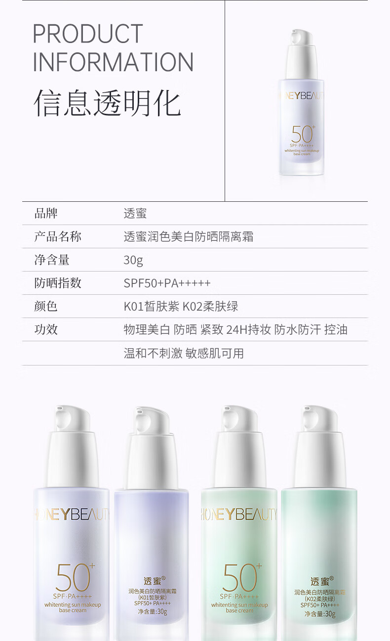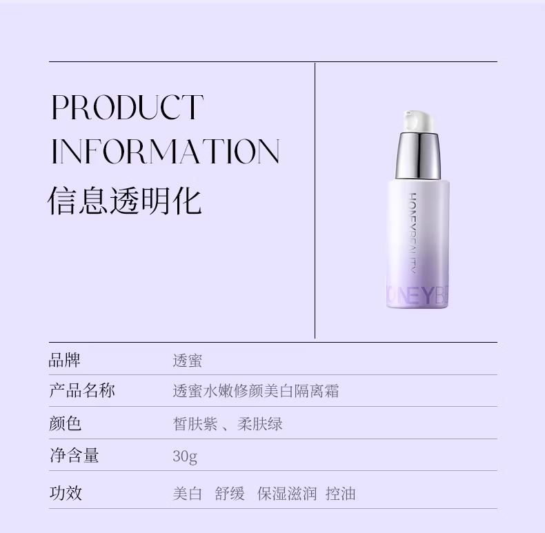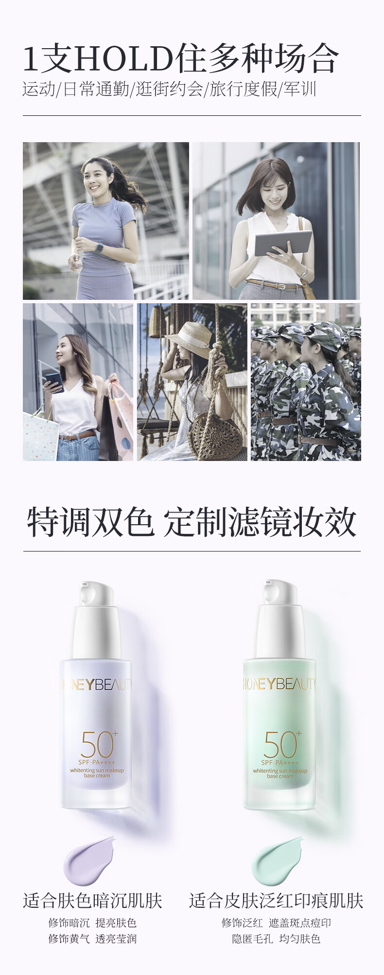 Translucent honey isolation cream, pre-makeup concealer, no makeup, brightening skin tone, invisible pore isolation and protection, two-in-one gift, fair skin purple*1 (suitable for yellow and dull skin)