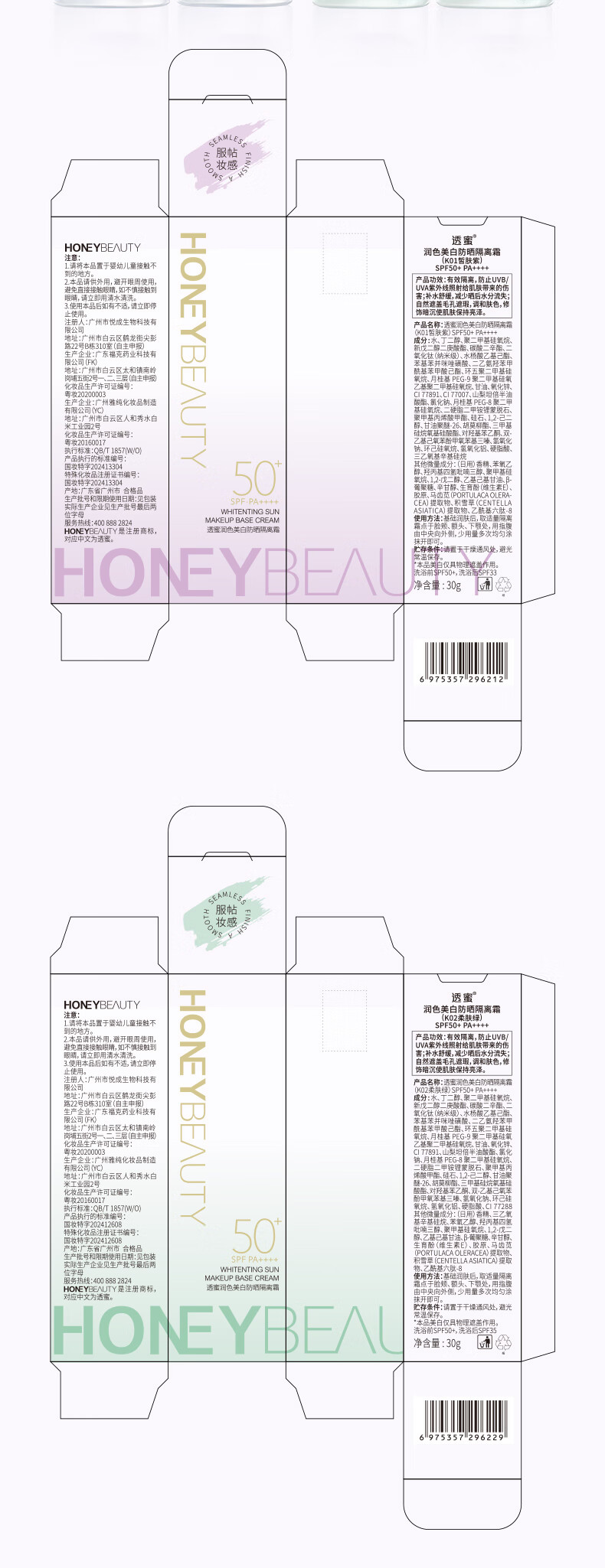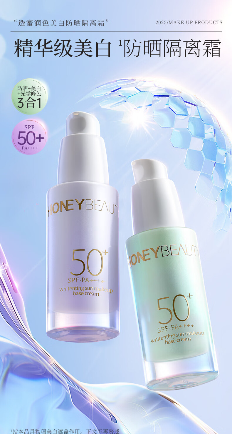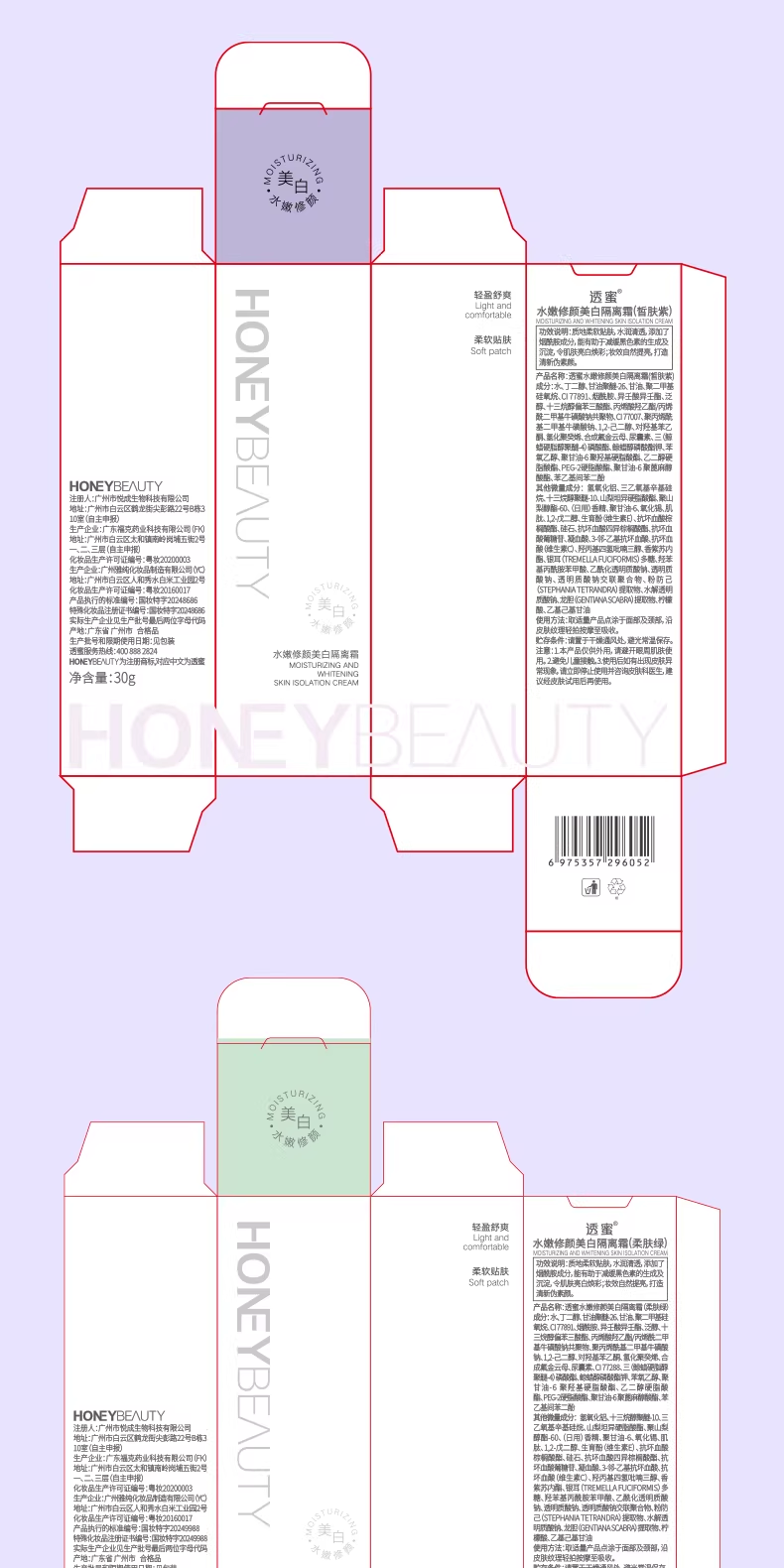 Translucent honey isolation cream, pre-makeup concealer, no makeup, brightening skin tone, invisible pore isolation and protection, two-in-one gift, fair skin purple*1 (suitable for yellow and dull skin)