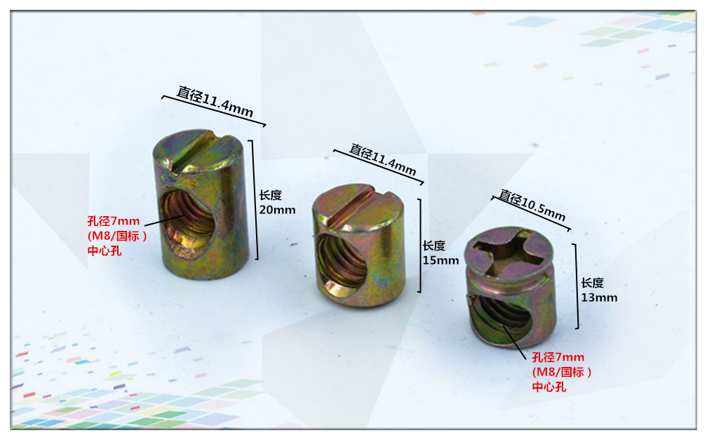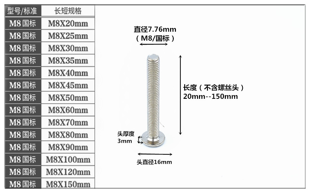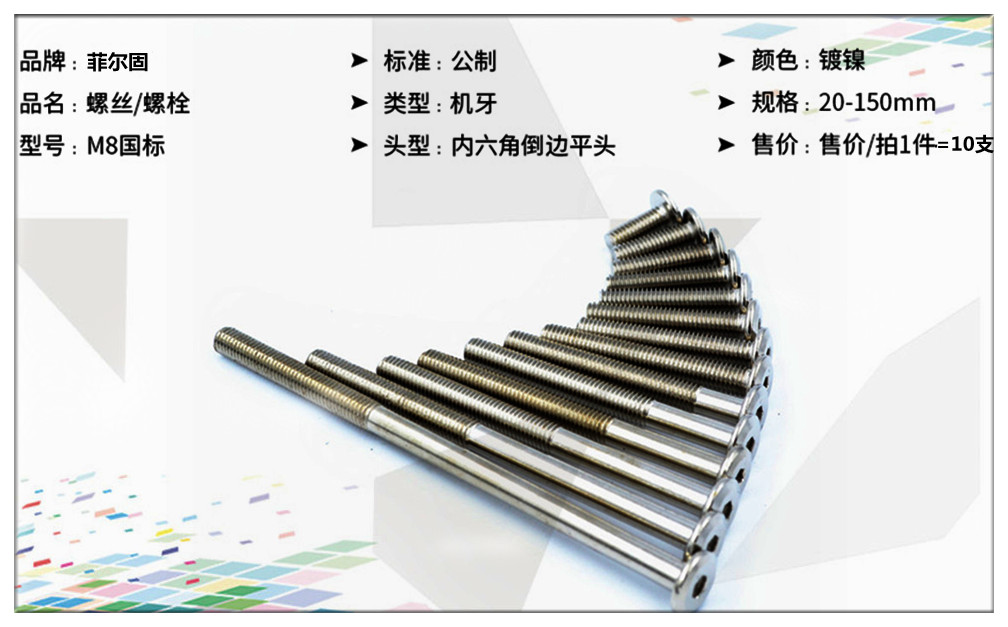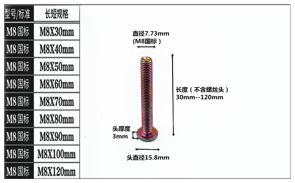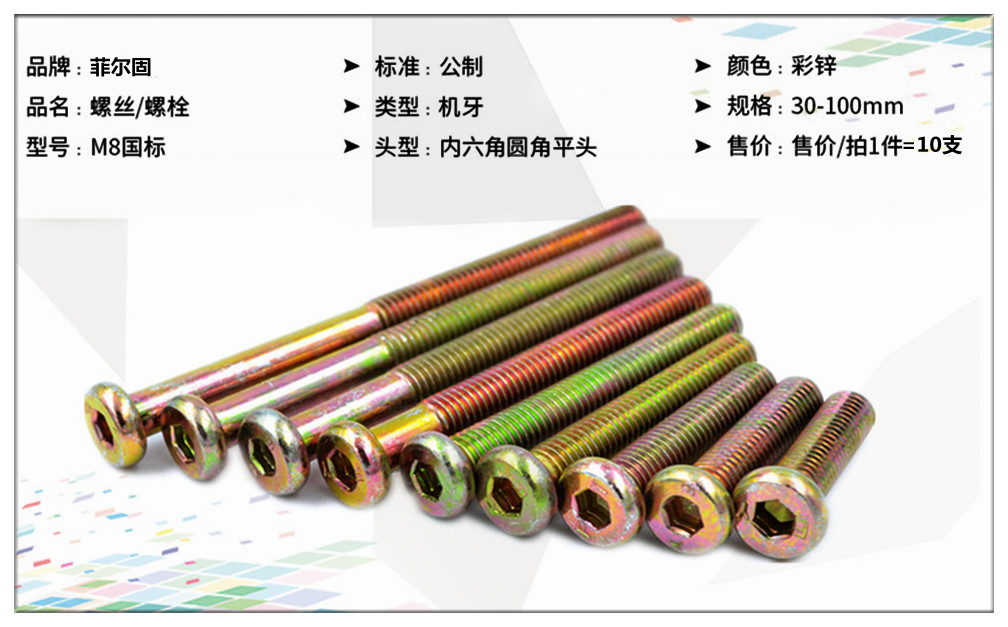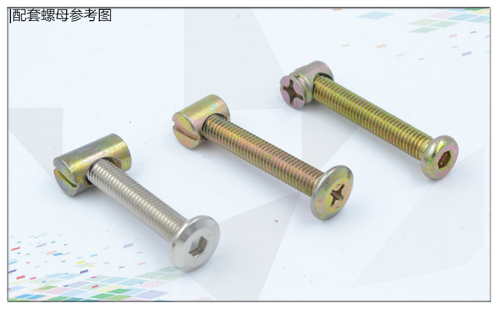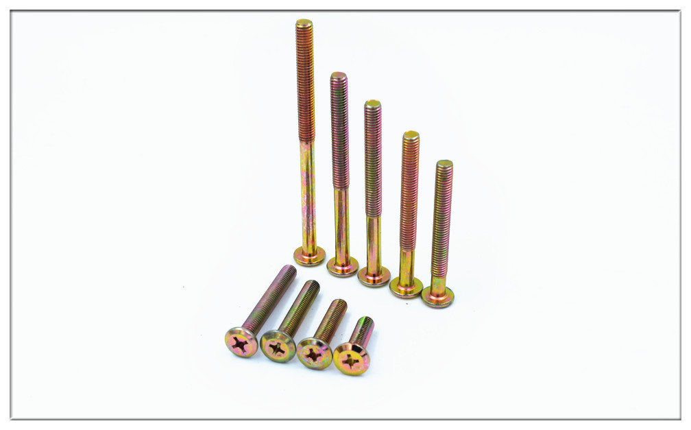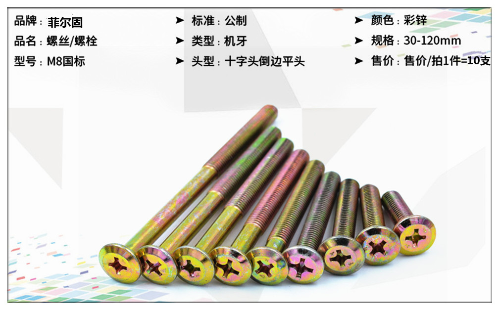 FEI ER GU M8 national standard cross chamfered flat head hexagonal machine screw solid wood bed connector table and chair fastening bolt cross color zinc plated single screw M8*60mm=10 pieces