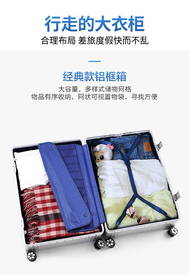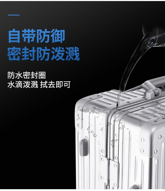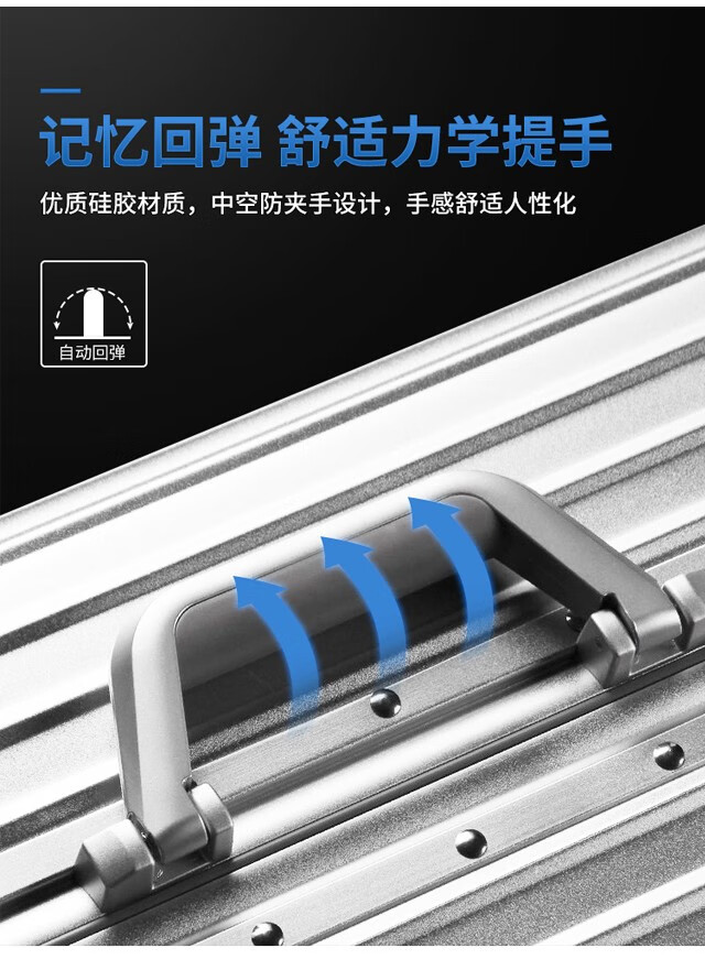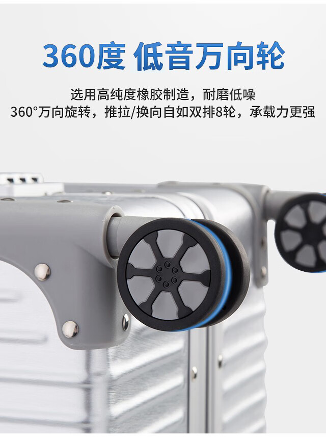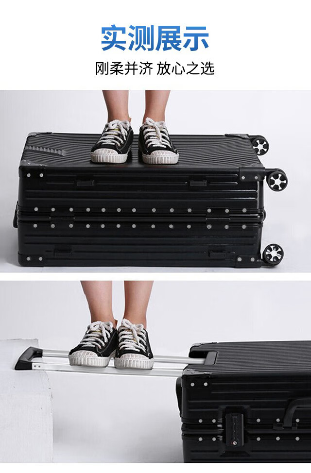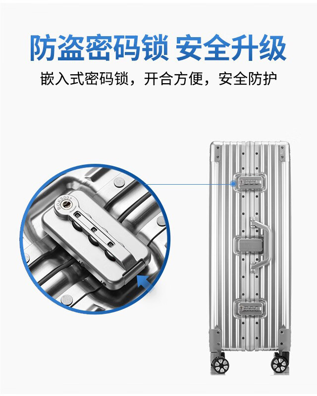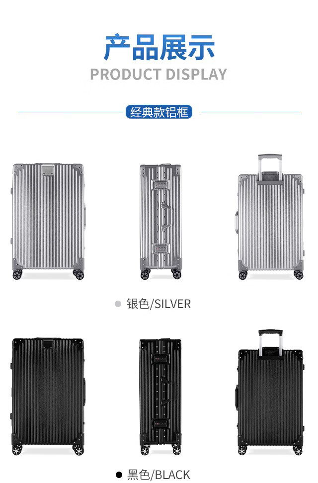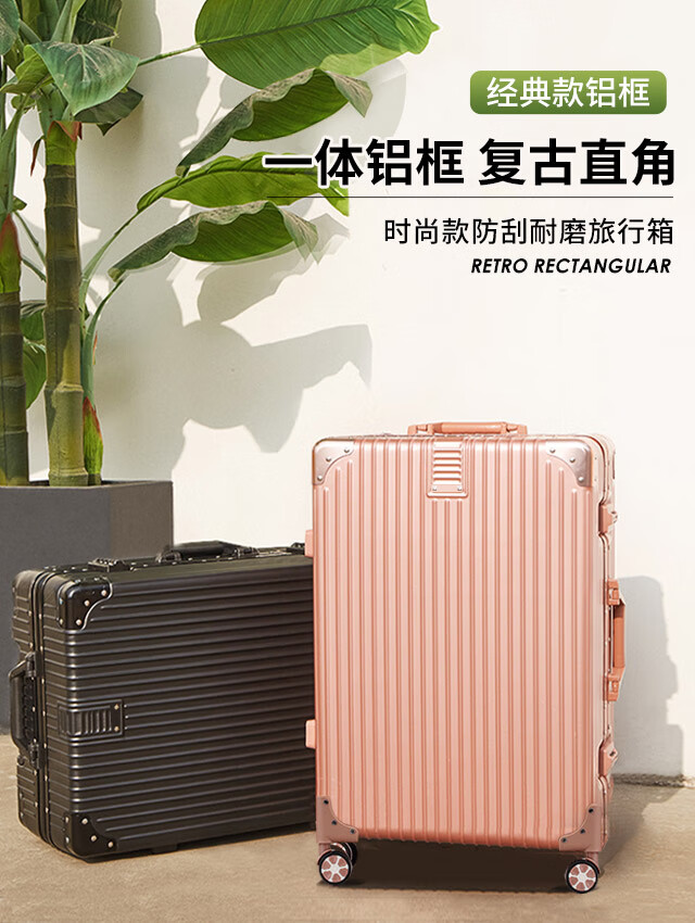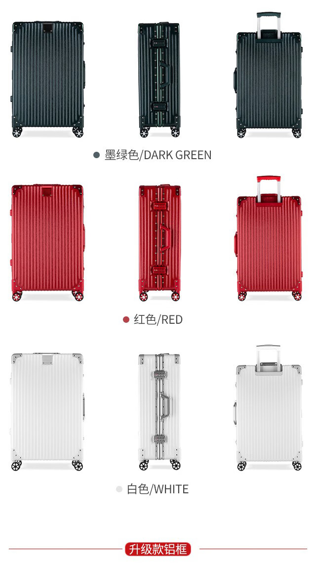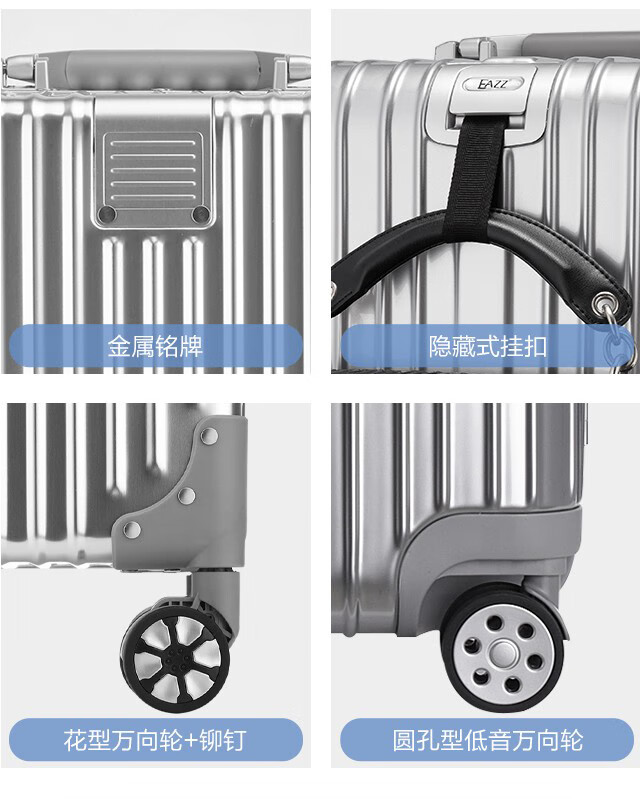 EAZZ upgraded anti-scratch suitcase aluminum frame trolley suitcase suitcase for male and female students password box boarding suitcase leather suitcase classic aluminum frame - silver 26 inches = mobile home