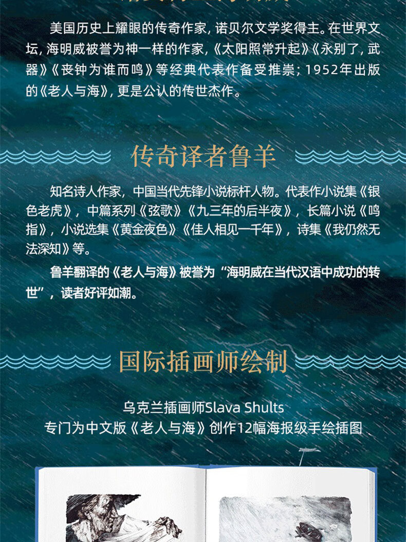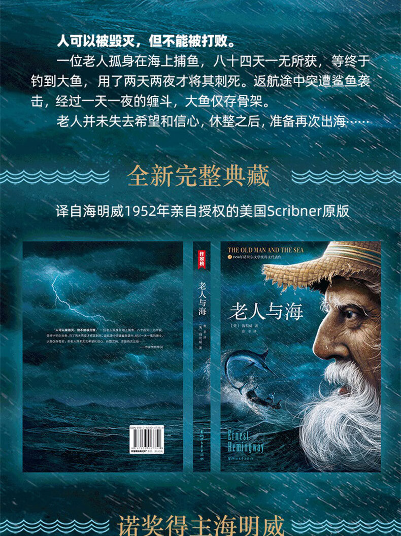 The Old Man and the Sea Chinese Hardcover Unabridged Illustrated Edition Writer's List Hemingway's Classic Novel