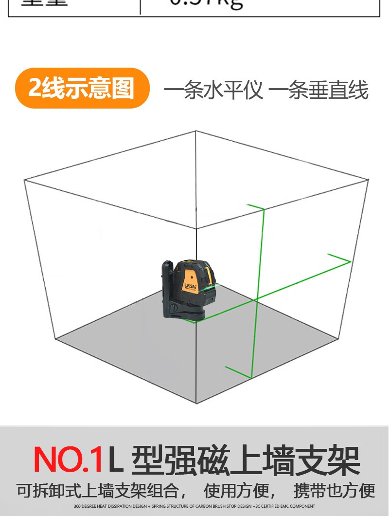 Laser Laser Laser Infrared Level Green Light 2-Line Magnetic Bracket LSG609S Laser Leveling Meter Two-Line Marking