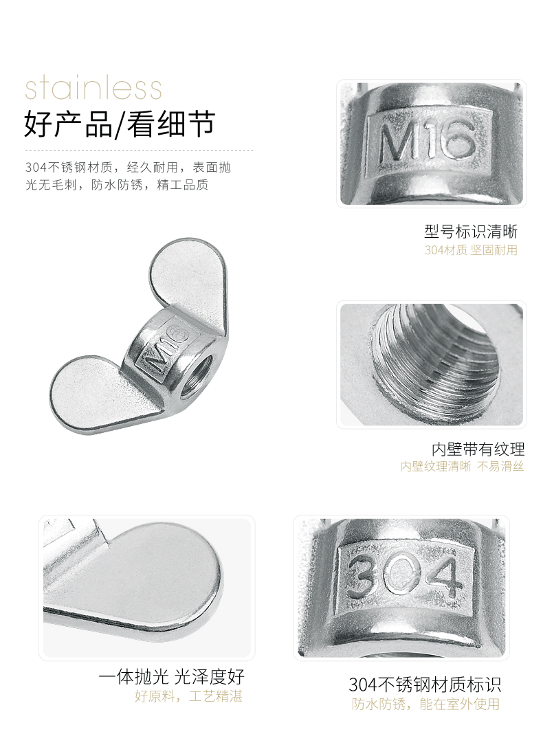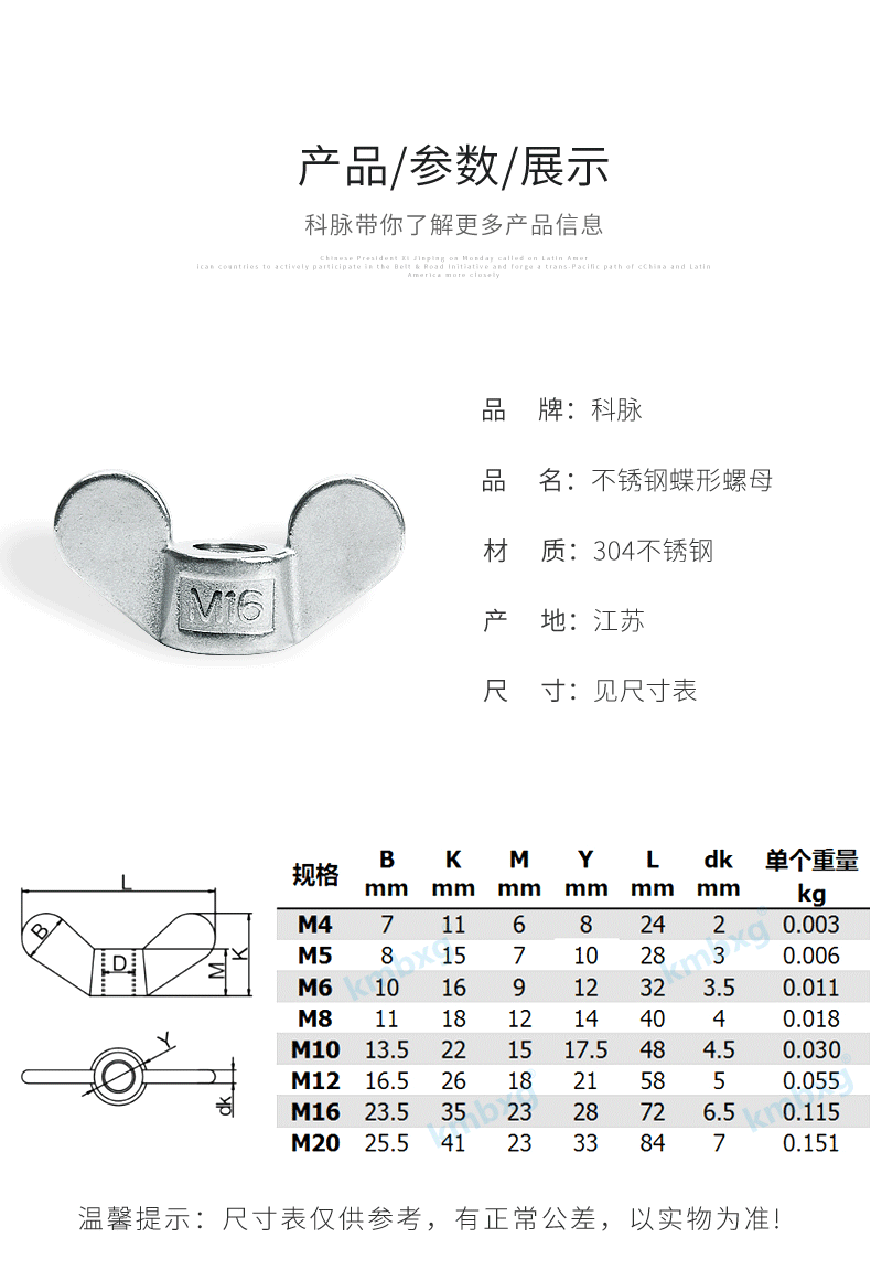 Kemai 304 stainless steel butterfly nut, butterfly nut, ingot nut, disc mother horn nut, hand-tightened butterfly disc cap, 304 material, M6