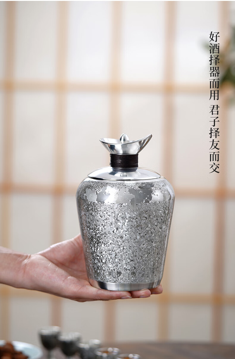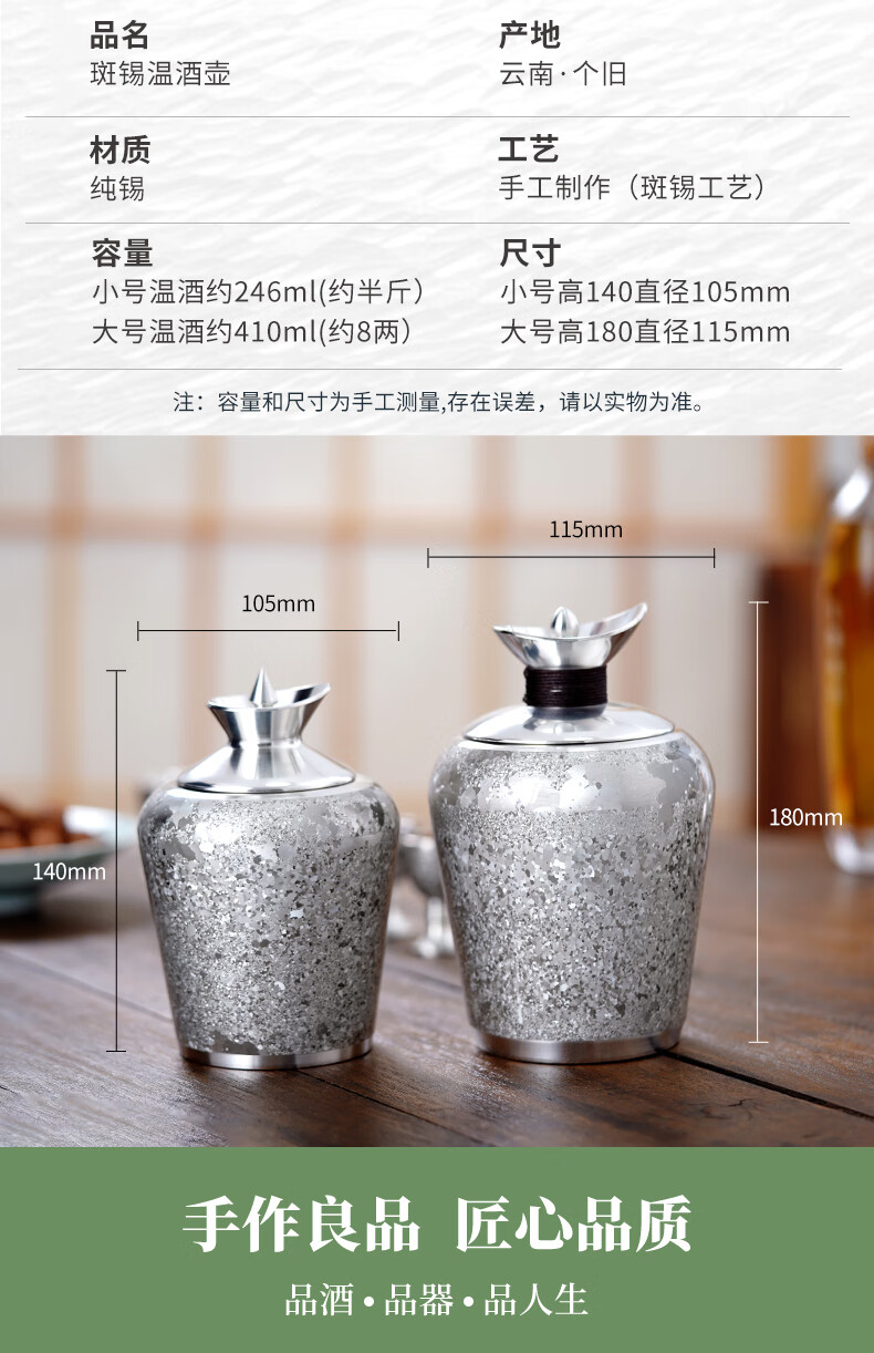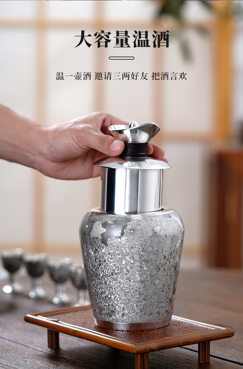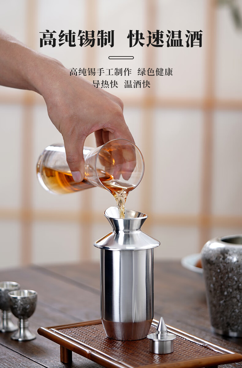 Banxi Long Large Pure Tin Warm Wine Kettle Wine Warmer Hot Wine Kettle Warmer Retro Handmade Warm Rice Wine White Wine Four Liang/Eight Liang Large Spot Tin Warm Wine Kettle