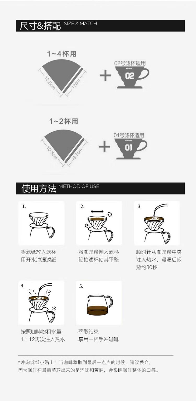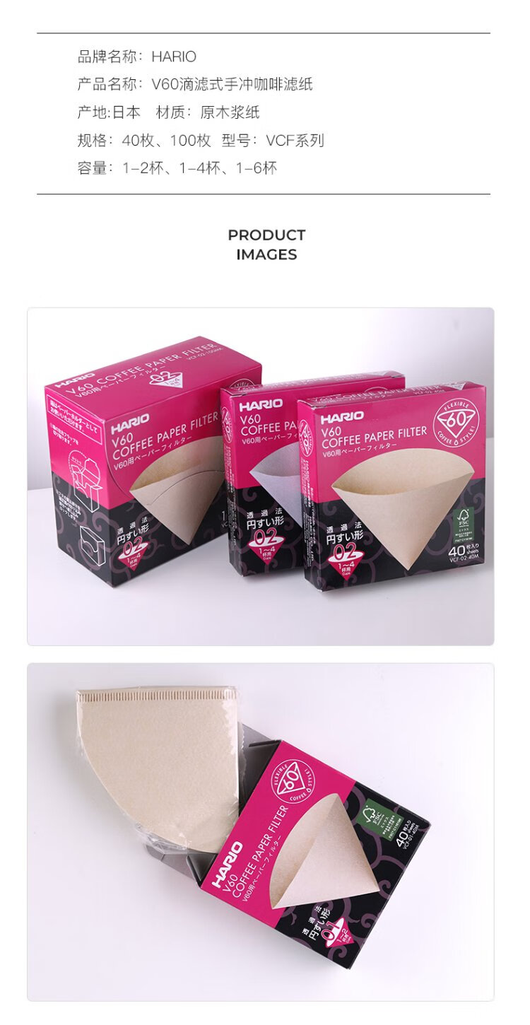 HARIO original imported V60 hand brewed coffee filter paper filter paper filter bag coffee machine filter paper bag 110 pieces No. 01