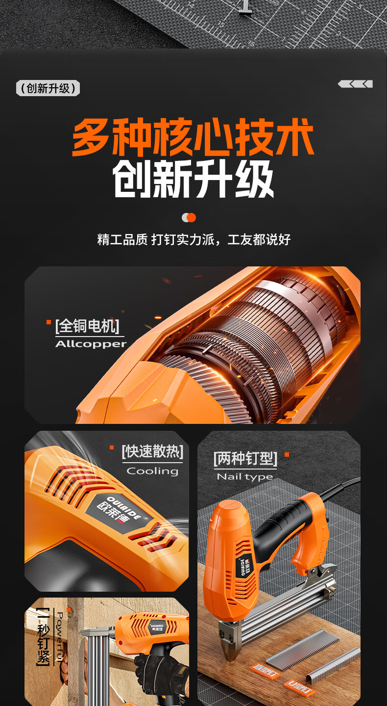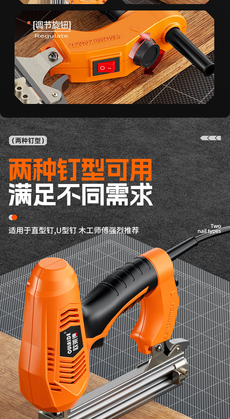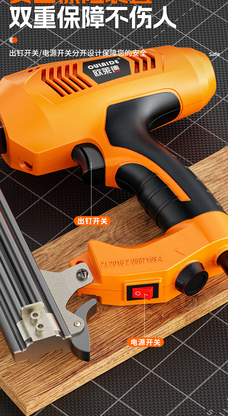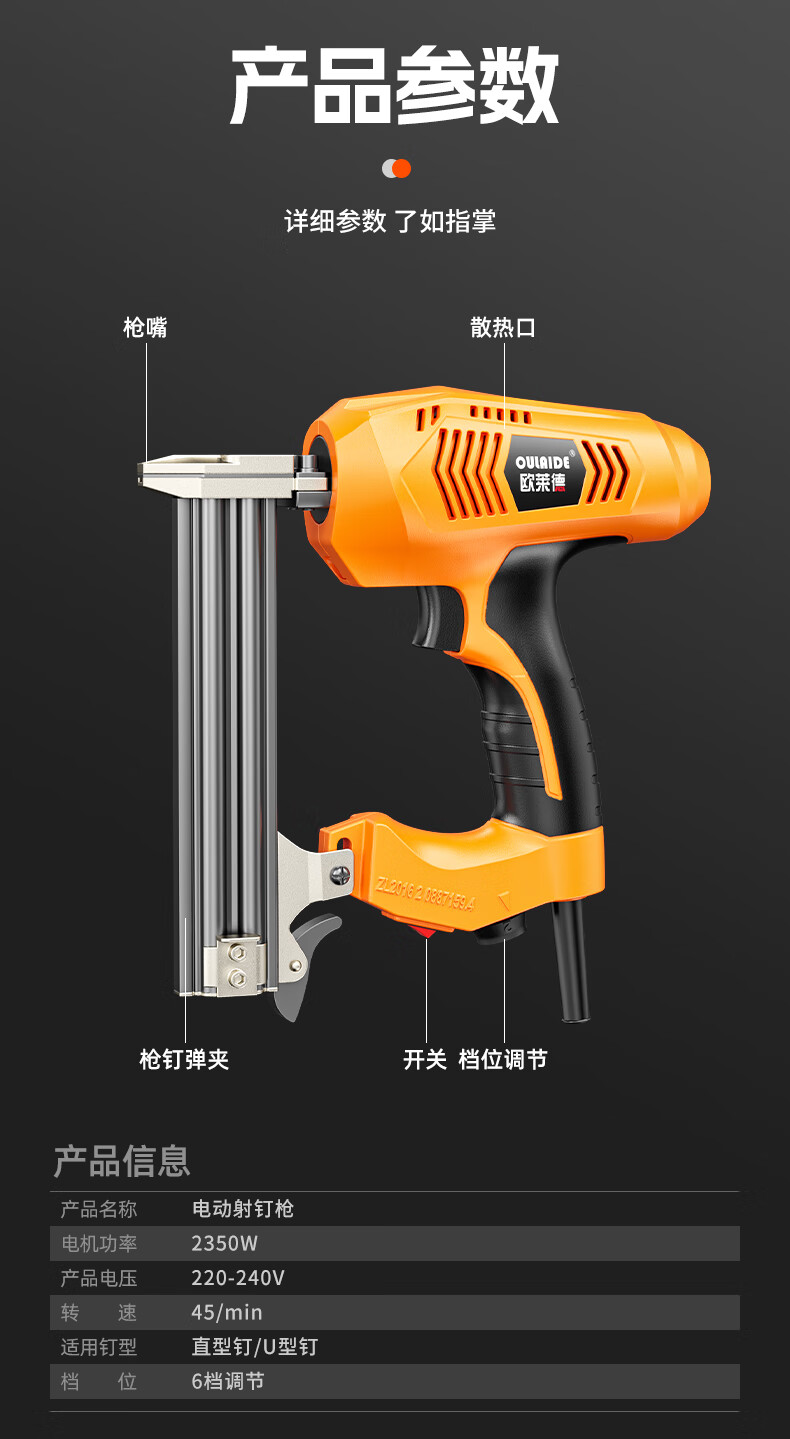 OULAIDE electric nail gun dual-purpose adjustable nail gun nail gun straight nail gun woodworking power tool set 2300W plug-in type F30 straight nail U-shaped nail dual-purpose nail gun