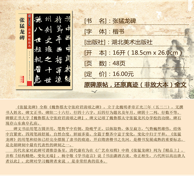 Ink dot calligraphy, Wei Stele Zhang Zhang Menglong Stele passed down from generation to generation, selected inscriptions for adult beginners, introductory tutorial book on brush calligraphy and regular script, Wei Stele calligraphy copybook