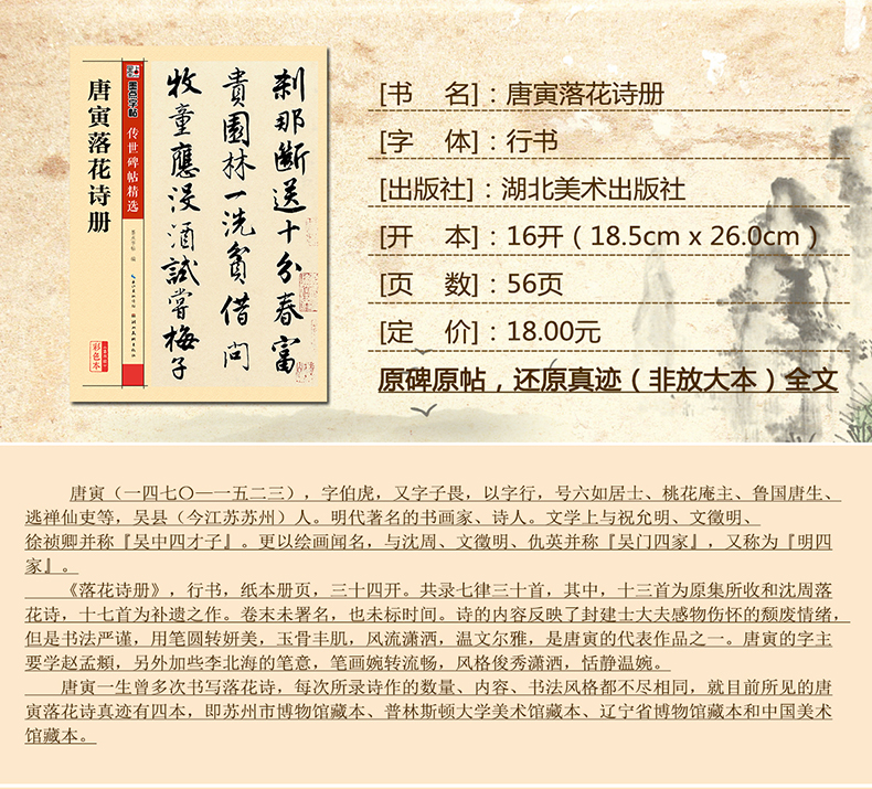 Ink dot copybook, Tang Yin Shu's Falling Flowers Poetry Album, Brush Calligraphy Original Copybook, Traditional Chinese Annotation, Selected Tang Bohu's Stele Calligraphy