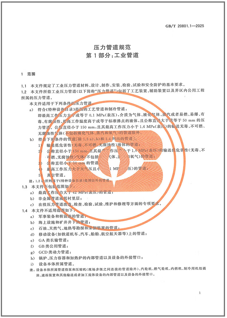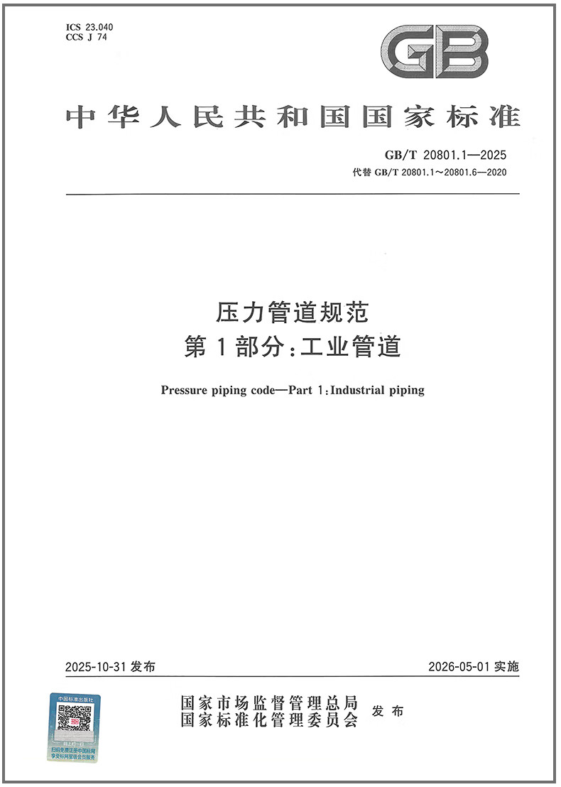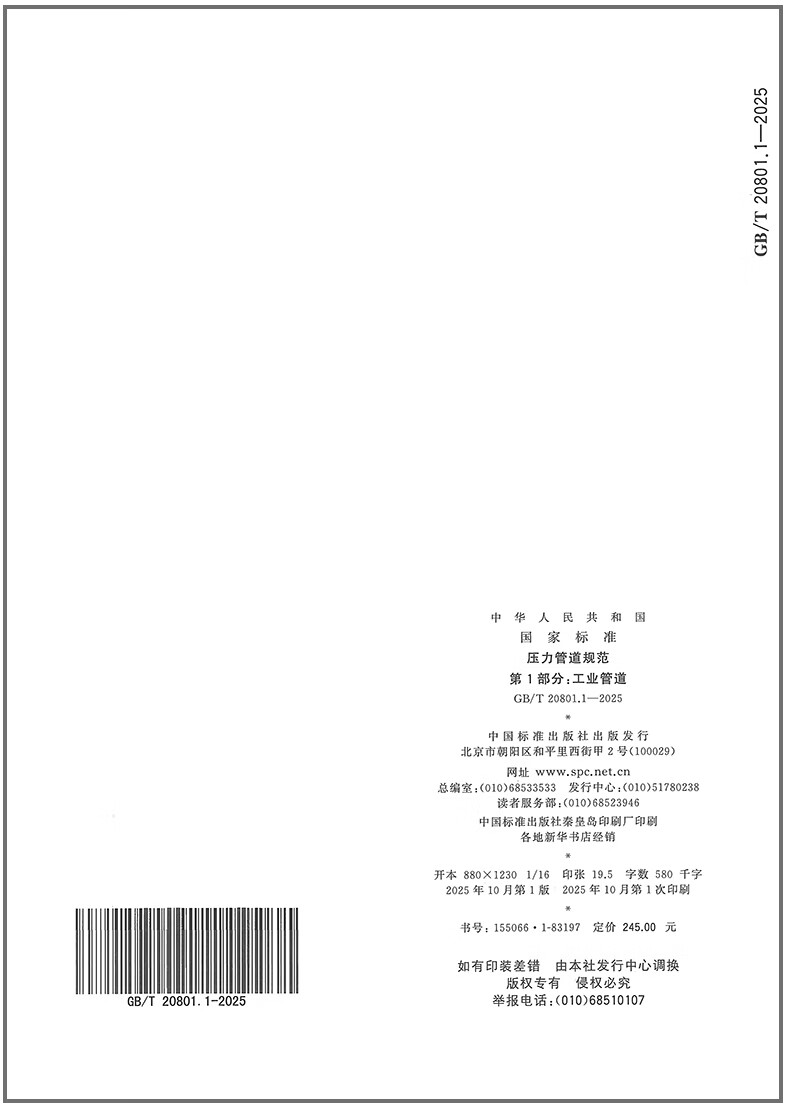 Genuine in stock 2025 new version GB/T 20801.1-2025 Pressure Pipe Specification Part 1 Industrial Pipeline (replacing the GB/T 20801.1-6-2020 part)