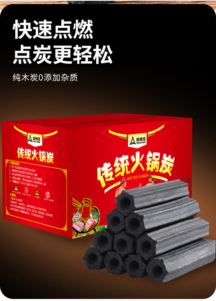Shangbaijia BBQ charcoal smokeless charcoal hot pot charcoal BBQ charcoal hot pot special charcoal copper hot pot charcoal 4 pounds barbecue utensils