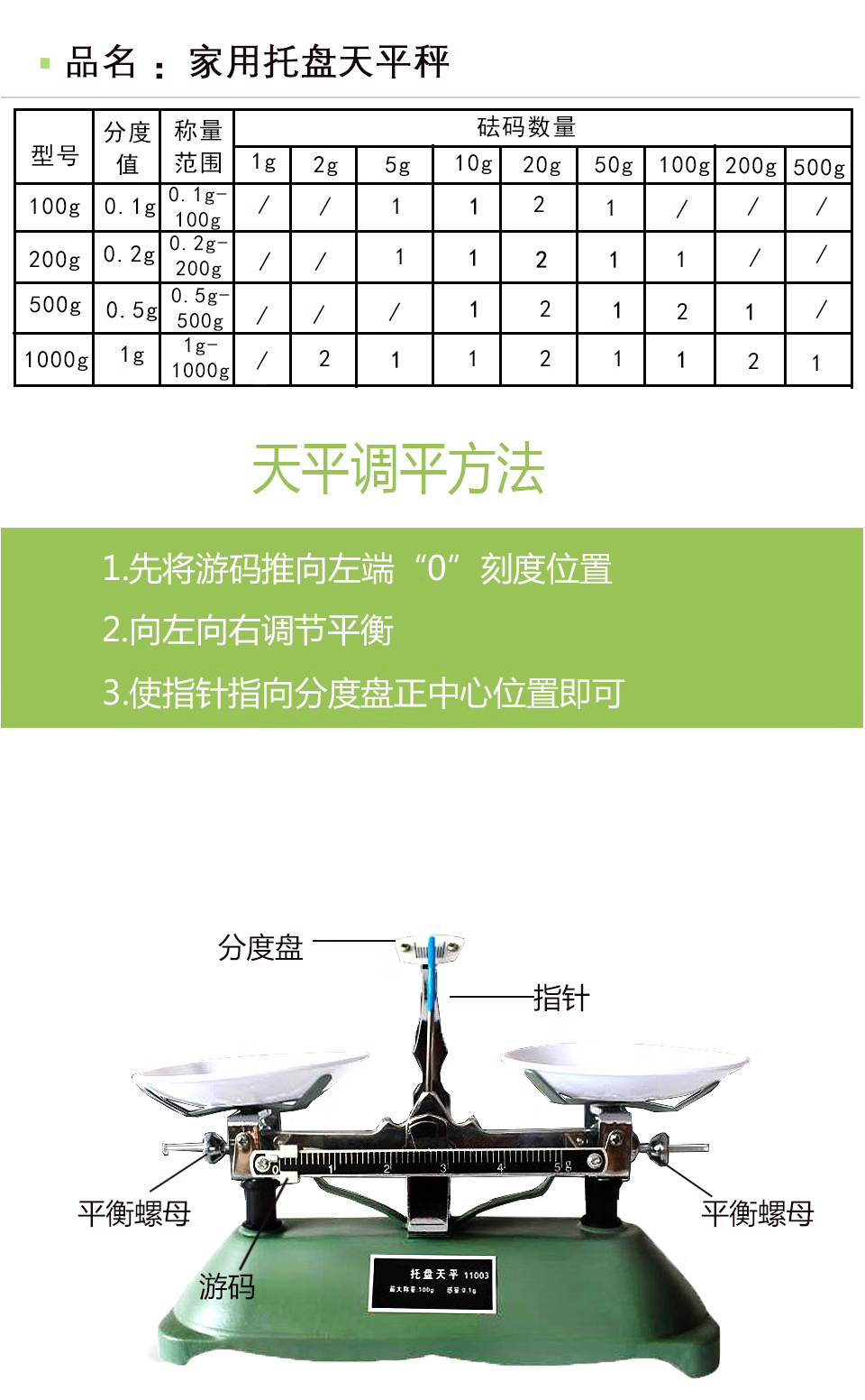 HuaChi Tray Balance Scale Household Mechanical Balance Scale Commercial Student Experiment Containing Weights Medication Teaching Rack Balance Weight Medicinal Scale HuaChi Tray Balance 1000g/1g (including weights)